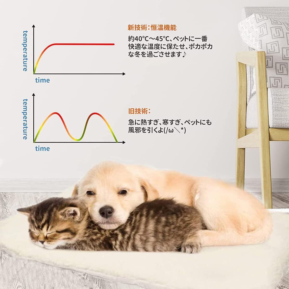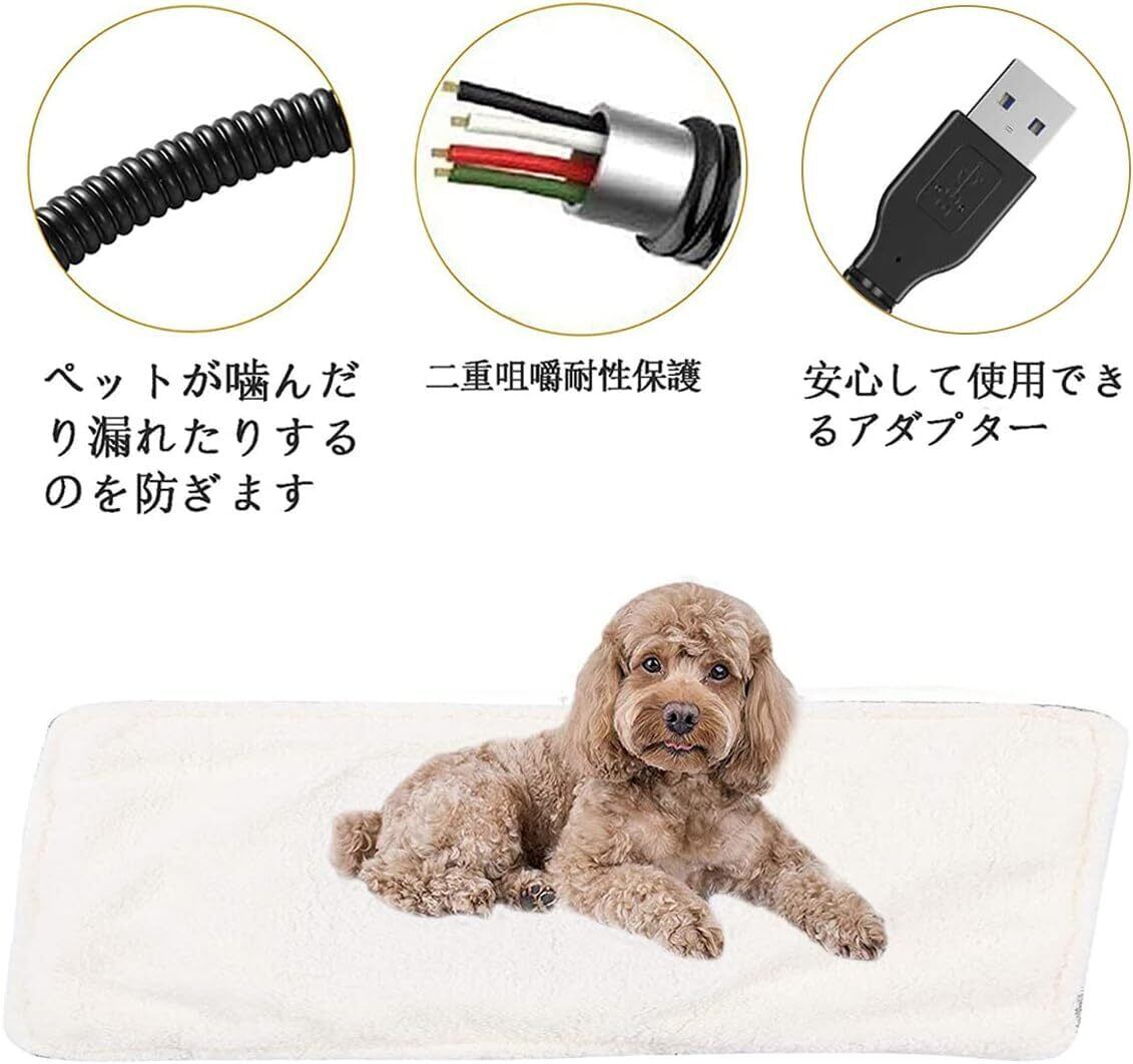 ペット用ホットカーペット ホットマット ペット用 ヒーターマット 犬 猫 防寒 猫用ホットヒーター 寒さ対策 小動物対応 暖かい 恒温30〜40℃ 過熱保護 60*40cm USB電源 噛み付き防止デザイン