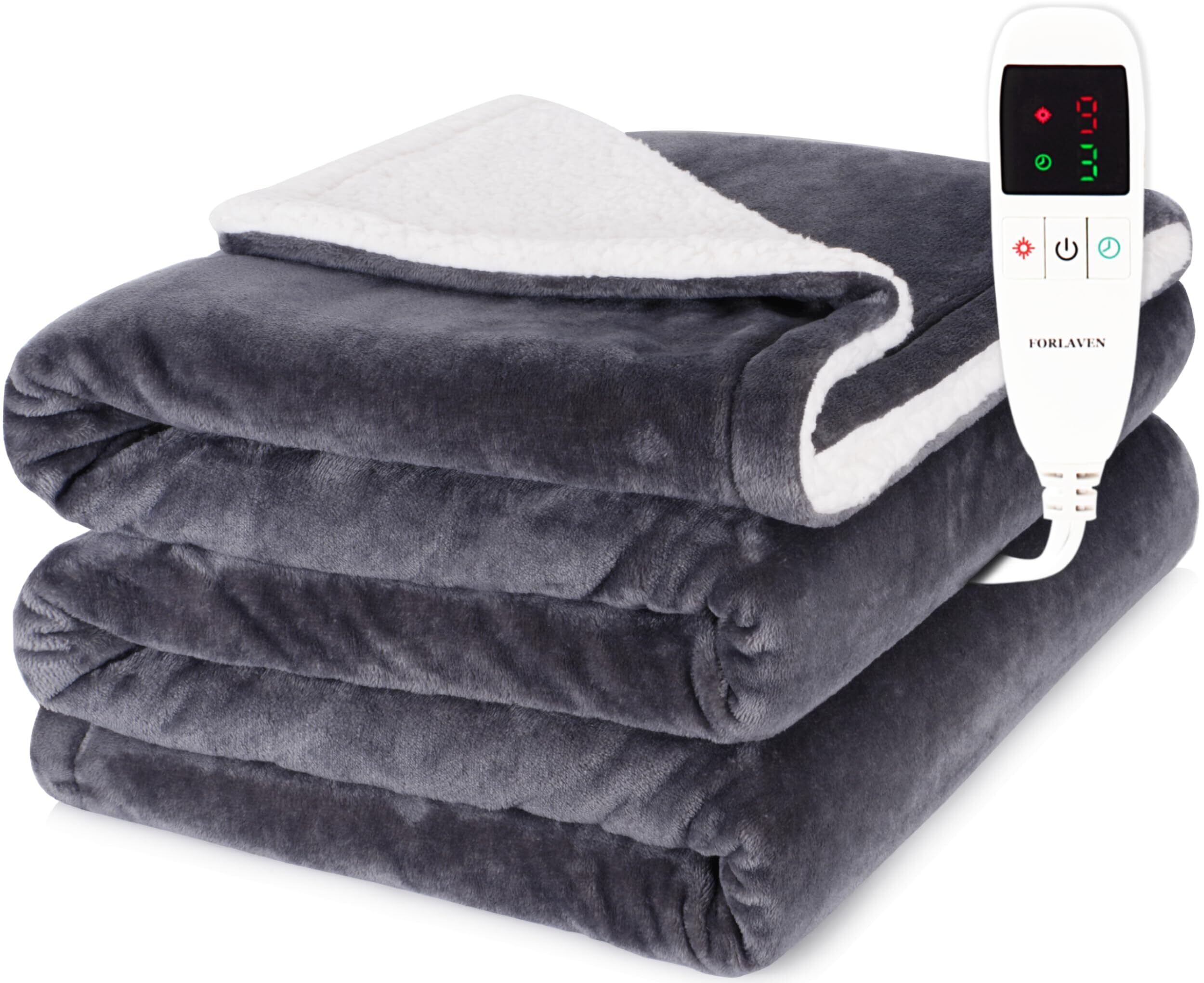 電気毛布 掛け敷き兼用 大判 190×130cm セミダブル 洗濯ネット付き 速暖 9段階温度調節 タイマー付き 節電 省エネ ダニ退治 防寒対策 丸洗いOK 厚手フランネル&シープボア 肩掛け 膝掛け PSE認証済み (ダークグレー) Forlaven