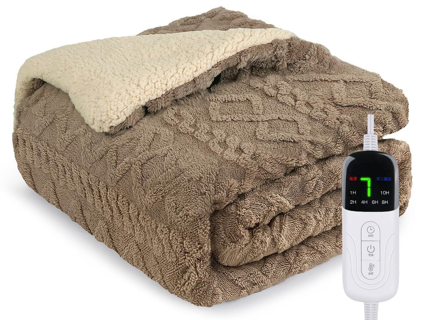 電気毛布 掛け敷き兼用 160*130cm 速暖 7段階温度調整 1-10時間タイマー付き 厚手生地 洗える 電気ブランケット ふわふわ 省エネ ダニ退治 過熱保護 抗菌 防臭 洗濯可能 防寒対策 暖房器具 PSE認証済み 日本語取扱い説明書付き コーヒー