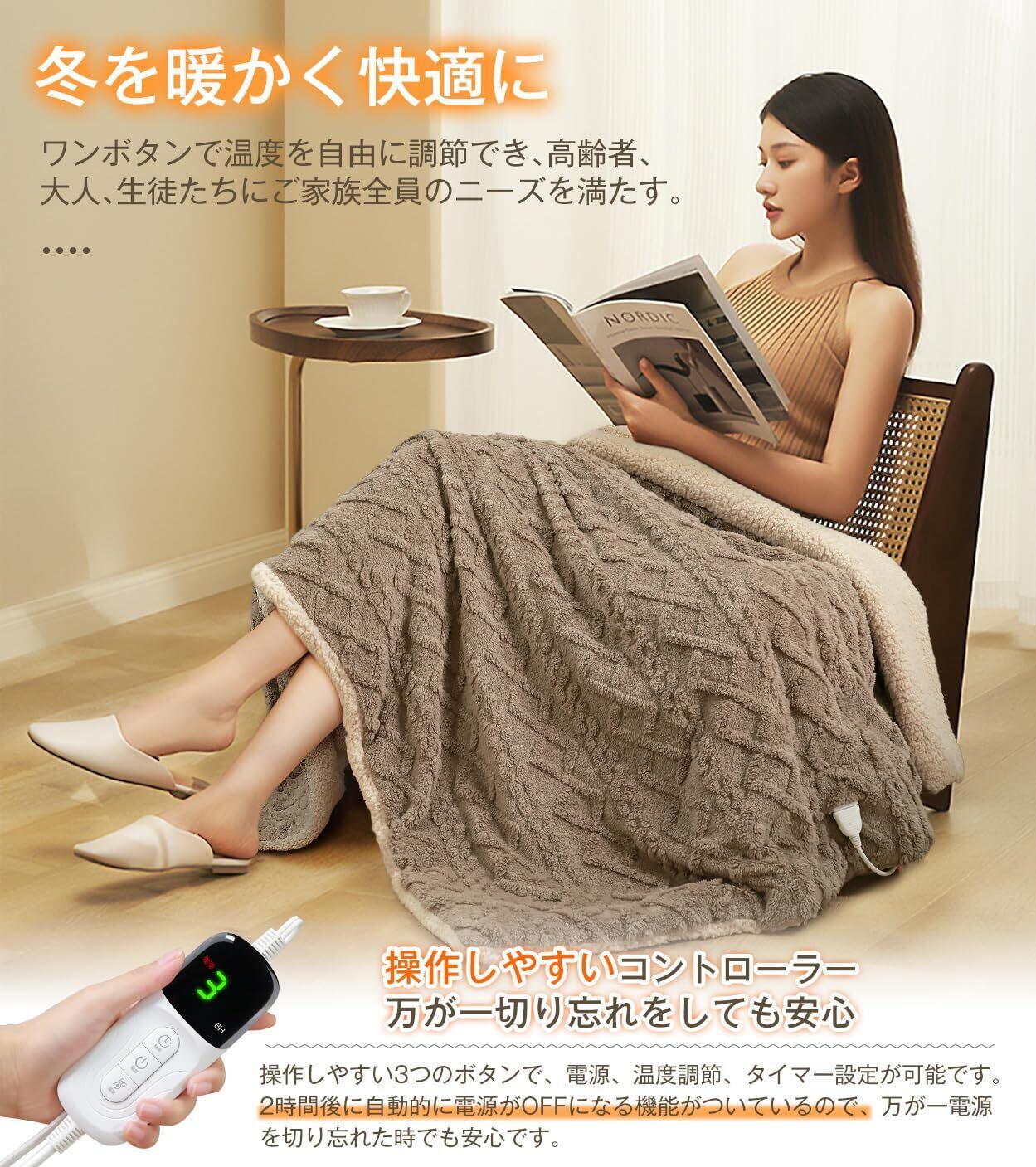 コーヒーカラーのシンプルでスタイリッシュなデザインは、どんなインテリアにもマッチします。掛けても敷いても使える多機能なアイテムで、リビングや寝室での使用にぴったりです。冬の季節に欠かせない、心地よさを提供します!