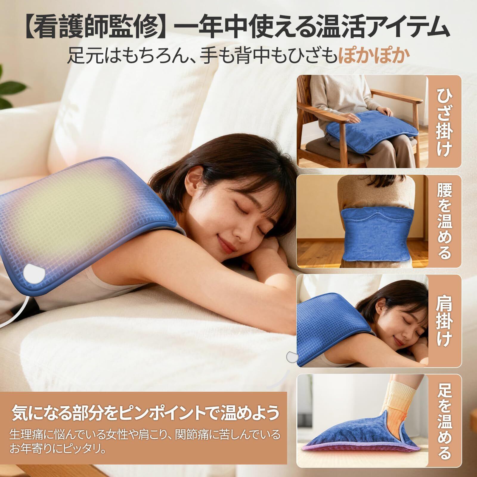 【上質な肌触り・安全設計 ・洗えて清潔・ダニ対策】PSE認証を取得。過熱保護・過電流保護・短絡保護・難燃などの多重安全機能を備えた発熱線により、安定した暖かさと安全性を両立しました。表面は肌触りの良いマイクロファイバー、内部は保温性の高いコットンを充填。色落ちや毛玉の心配も少なく、快適です。さらに、製品の使用時に発生する50℃以上の熱がダニ対策に効果的。電源コードを取り外せば、手洗いや洗濯機で丸洗いできるため清潔を保てます。全製品、出荷前に厳格な検査を通過しています。