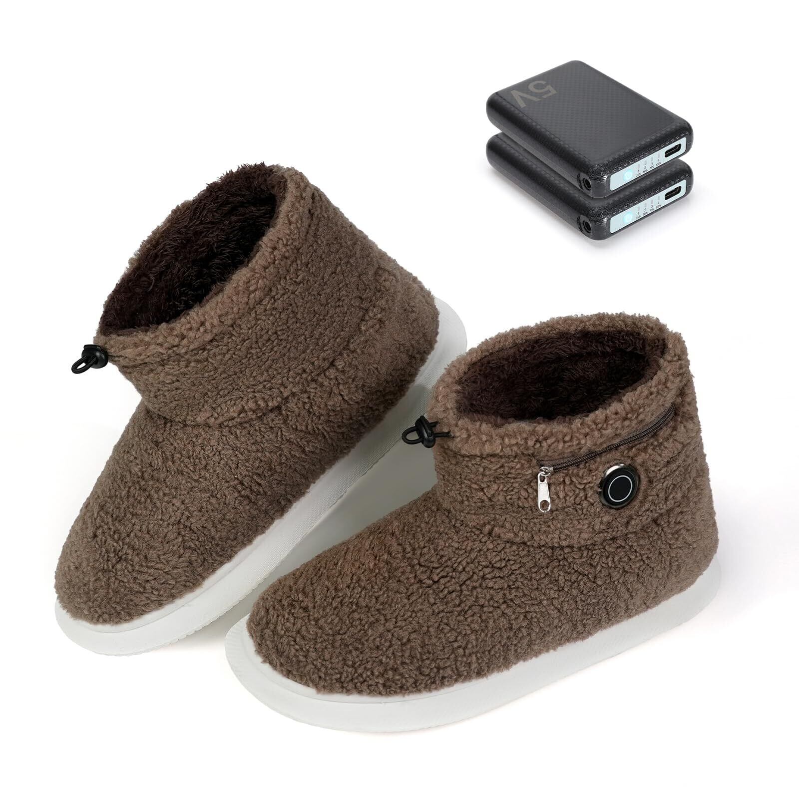 Codify 電気スリッパ フットウォーマー ル【6000mAh大容量*2個 & 8秒速暖】 足温器 コードレス 両面発熱 足元ヒーター 日本製ヒーター PSE認証済 3段階温度調節 8時間使用可能 1.5m延長コード付き NTC過熱保護 洗濯可能 滑り止め 男女兼用 省エネ (ダークブラウン, L(25-27.5cm))