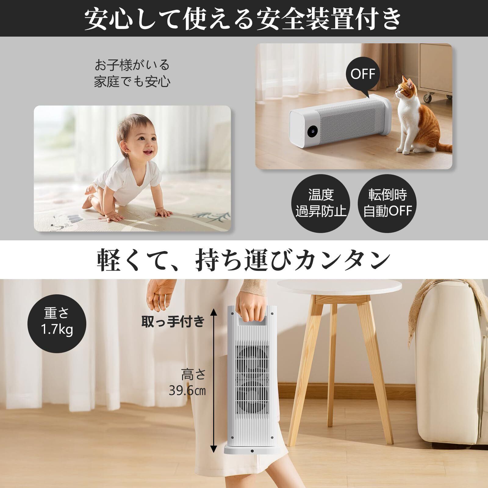 【使いやすさへの配慮】転倒時自動停止機能に加え、過熱を防ぐ多段階保護システムを標準装備。PSE認証を取得した確かな品質で、ご家族皆様に安心してご利用いただけます。軽量ボディ(1.73kg)と取っ手付きデザインで、家中どこへでも簡単に移動可能。冬の寒さ対策に配慮した設計で、快適な室内環境を実現します。