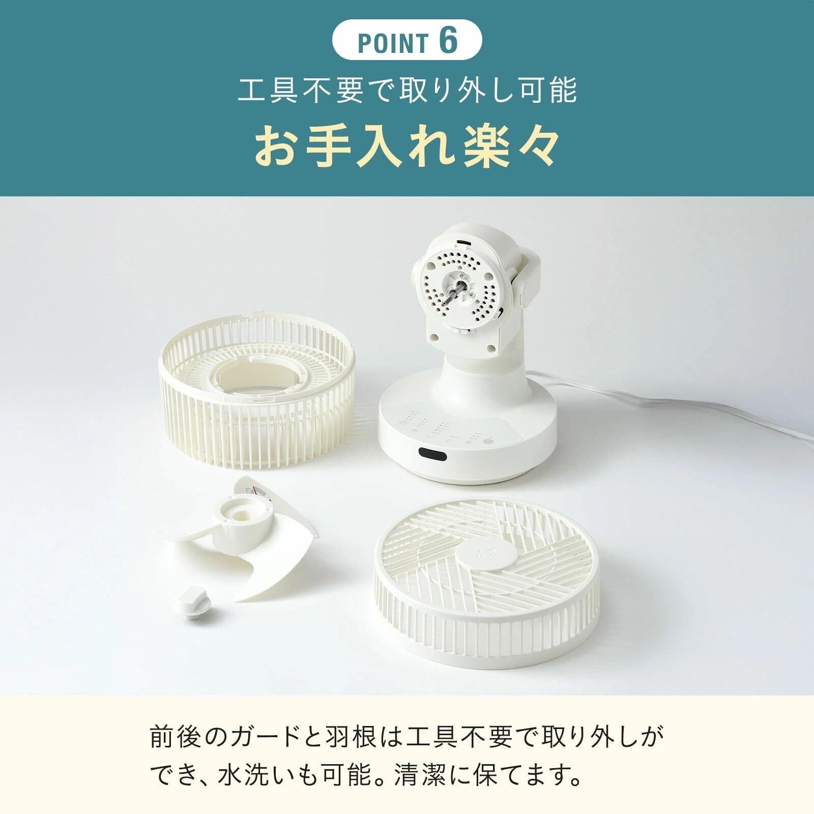 前面カバーは簡単に取り外し可能で、洗浄が容易に行えます。いつでも清潔な状態でご使用いただけるため、安心して風をお楽しみいただけます。