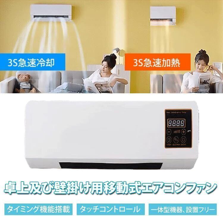 【小型エアコンサイズ】20*45*11.5cm小型エアコン;LED数値制御ディスプレイ、冷温風機能、強力な空気供給。 壁掛け+卓上ダブルフォルムデザインを採用し、どこにでも置きやすい小型エアコンです。