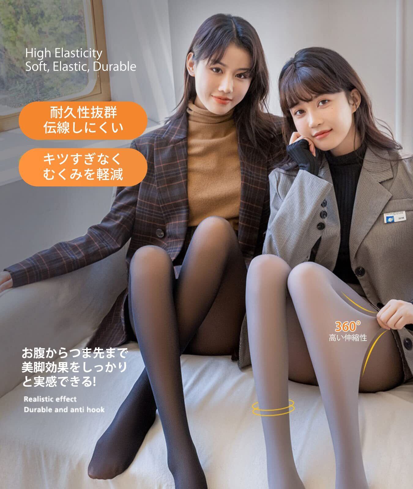 [Kemolpo] タイツ 裏起毛 レディース 透け感 フェイク ストッキング風 美脚 美尻 暖かい 防寒対策 伸縮性 ハイウエスト 冬用