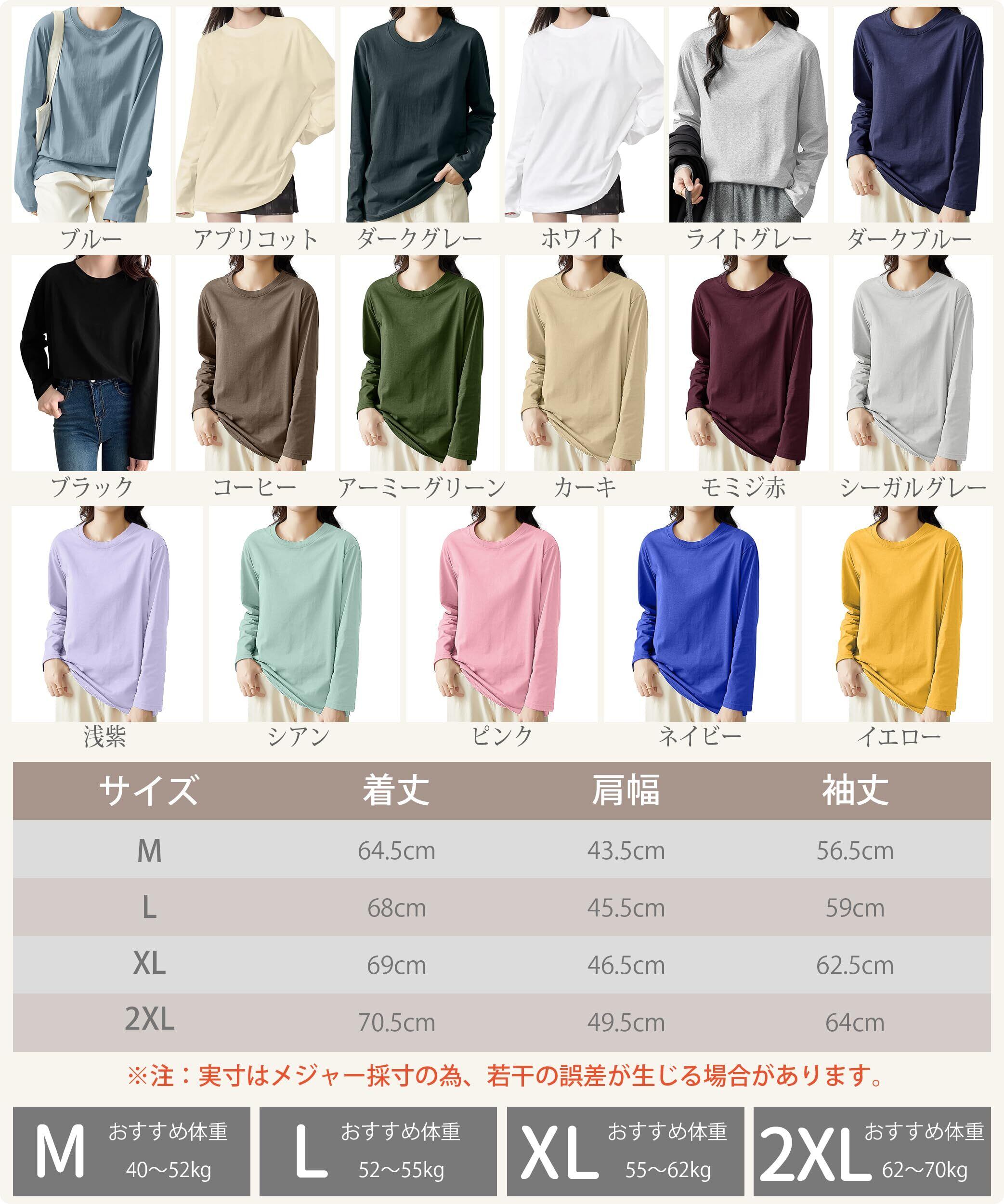 [EAXGO] 【綿100!当店1番人気】ロンティー レディース 長袖tシャツ トップス 【トレンドの新定義・ゆる感・小顔効果】 カットソー クルーネック ティーシャツ ロングスリーブ 無地 カジュアル ゆったり 重ね着 きれいめ オシャレ 秋
