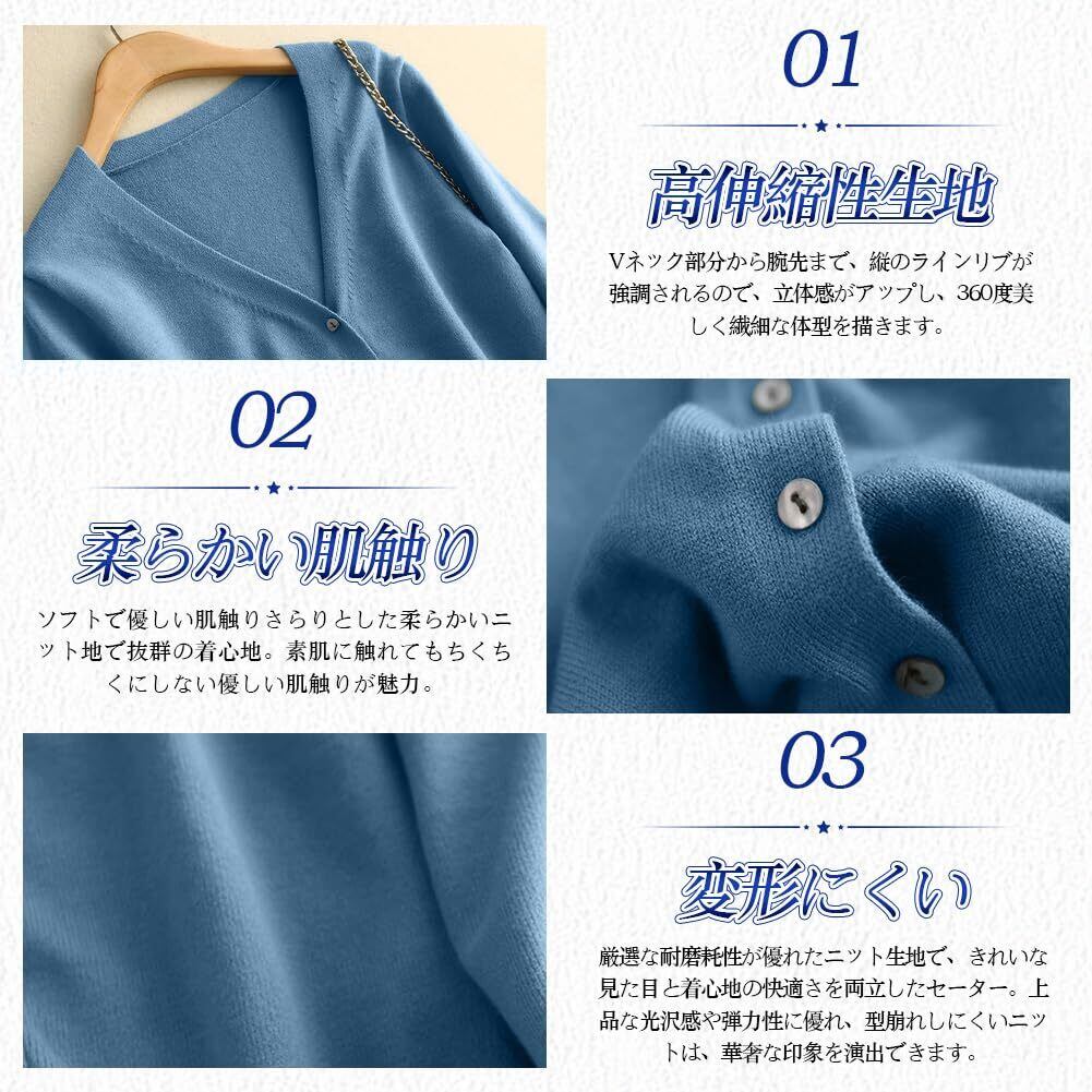 ➤ 特徴:Vネック、カシミヤタッチ素材、体型カバー、小顔効果、着痩せ効果、カジュアルデザイン