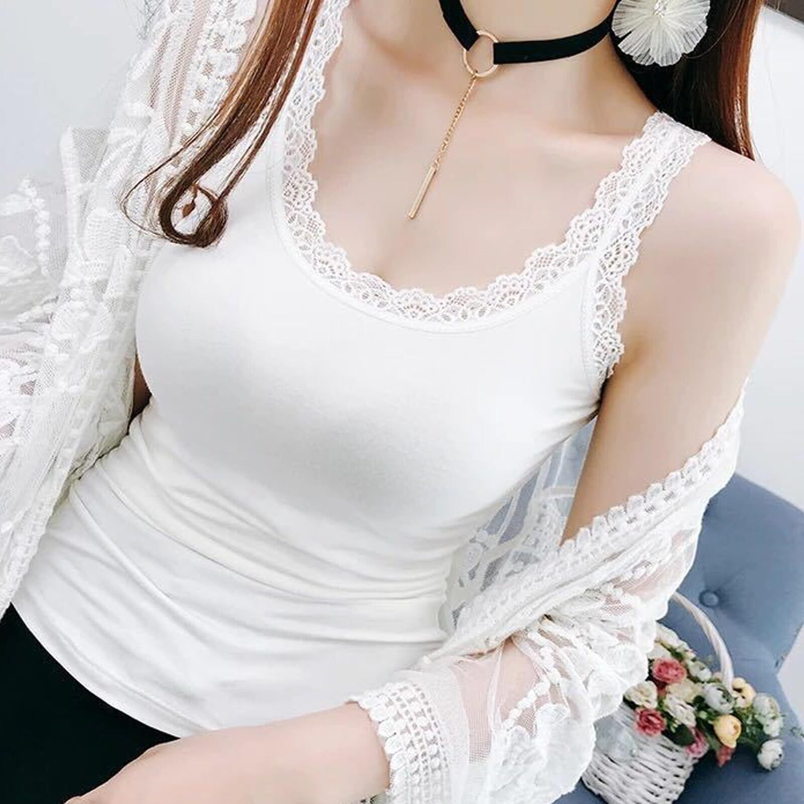 ➤ 特徴:ノースリーブ、レース花柄、柔らかい、快適、速乾