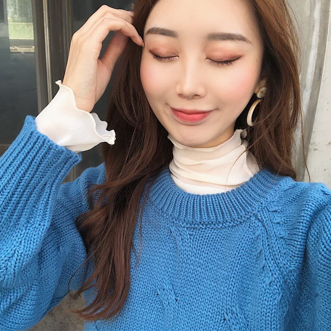 [優億] シアー トップス レディース チュールインナー薄手 ハイネック Tシャツ 長袖 シースルー 透け感 セクシー ブラウス トップス シースルー 着痩せ メロウフリル 柔らかい 重ね着 レイヤード コーデ 春秋夏冬