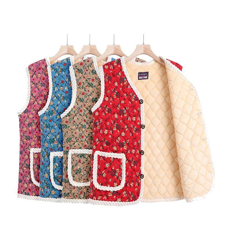 ハルモニチョッキ おばあちゃんチョッキ 韓国 ベスト 裏起毛 キルト 花柄 [並行輸入品]