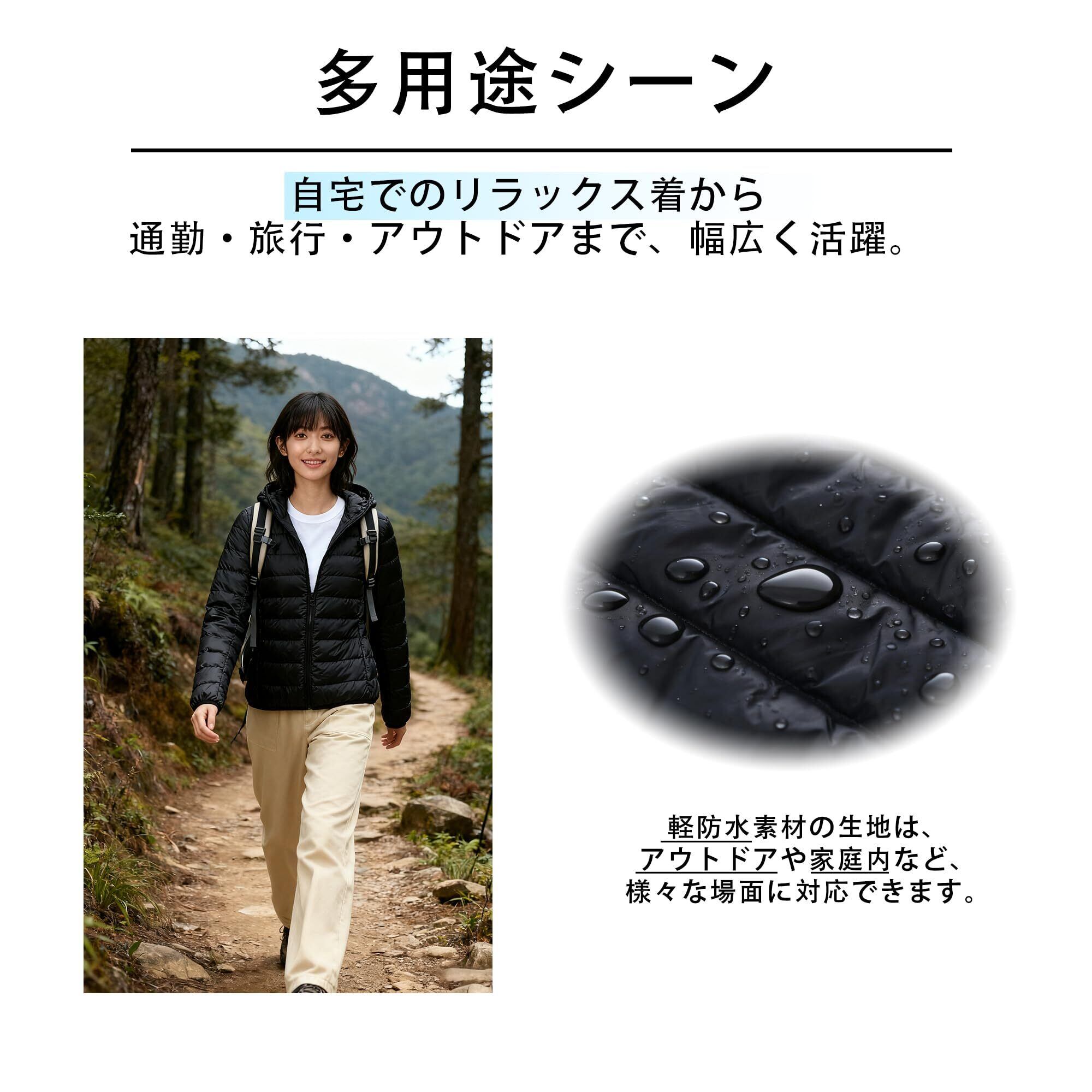 多用途シーン:自宅でのリラックス着から、通勤・旅行・アウトドアまで、幅広く活躍。収納袋付き:1着ごとに専用収納袋が付属。収納後は 500mlの小型保温ボトル程度のサイズになり、持ち運び便利。