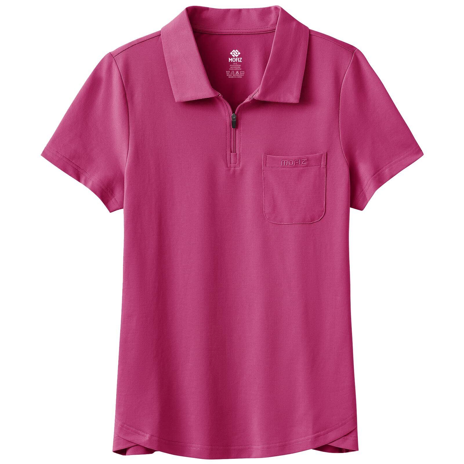 [YIRUIYA] ハーフジップ レディース ポロシャツ 半袖 トレーニングウェア ショートシャツ ゴルフシャツ テニスシャツ レディース スポーツ 春 夏 吸汗速乾 通気 日焼け止め 介護 ユニフォーム オフィス 仕事 おしゃれ