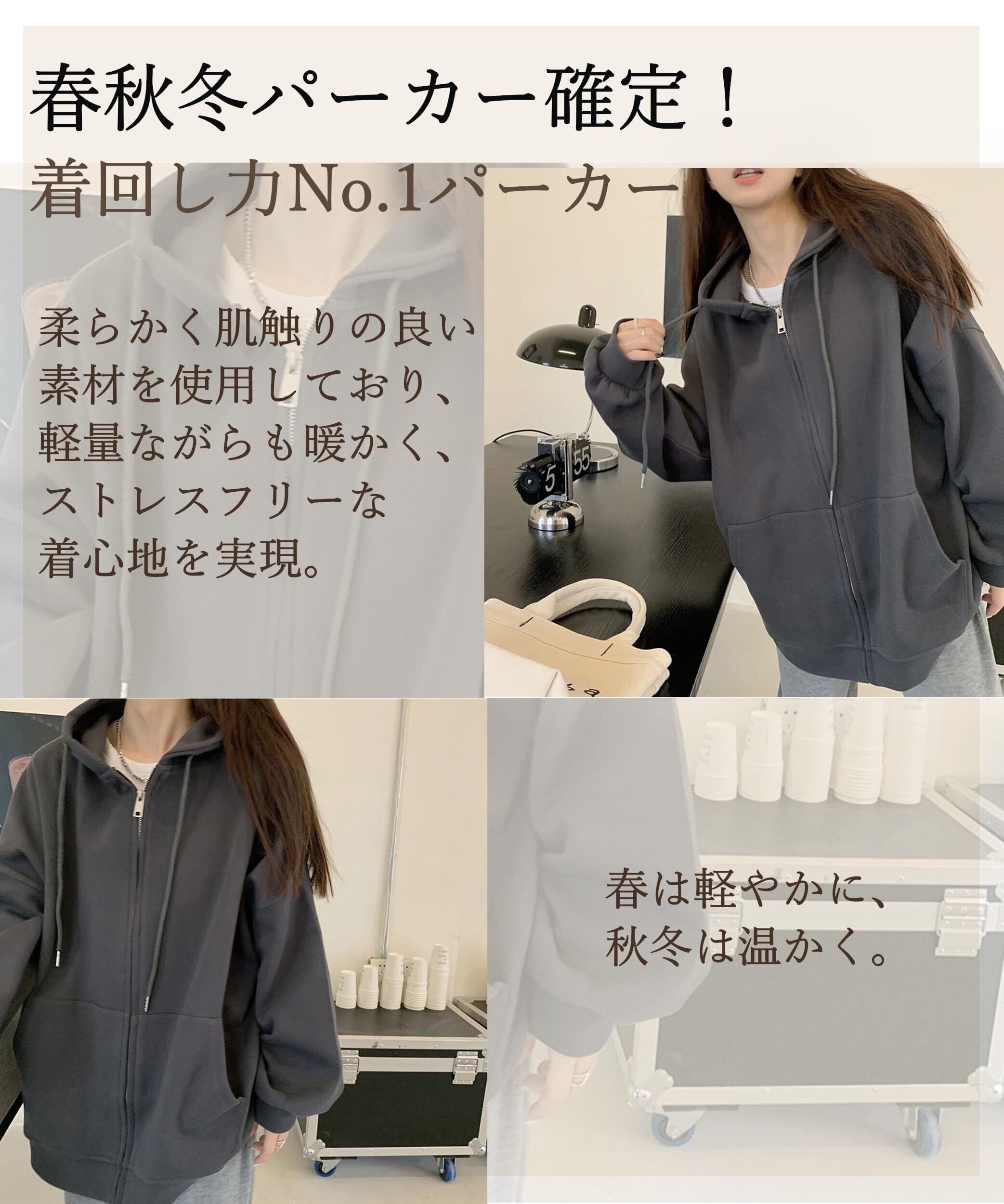 [Luxiwear] パーカー レディース 秋 【着るだけで細見え!即こなれ感×可愛さ】 ジップパーカー スウェット 長袖 トップス 防寒 保温 フード·ファスナー·ポケット付き 着痩せ 大きいサイズ ゆったり きれいめ 無地 おしゃれ 着回し カジュアル