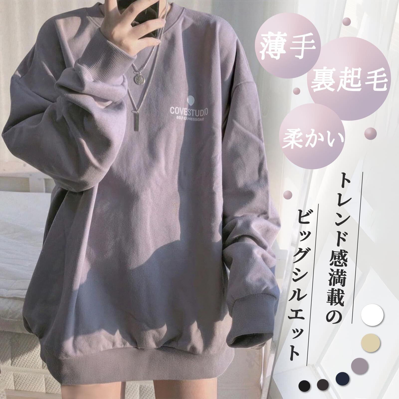 ビッグシルエットでトレンド感満載なオーバーサイズトレーナーが登場!シンプルでカジュアルなトレーナー、コーディネートも自由自在。チャコール 、キャメル、ネイビー、パープル 、ブラック、ホワイトの6色、薄手のも裏起毛のもをご用意しており、合わせるボトムを選ばない絶妙な丈感で使い勝手抜群、デイリーにもオフィスにも一枚でコーデが広がります。ルーズなシルエットがおしゃれでかわいい、秋口に大活躍するトップス!