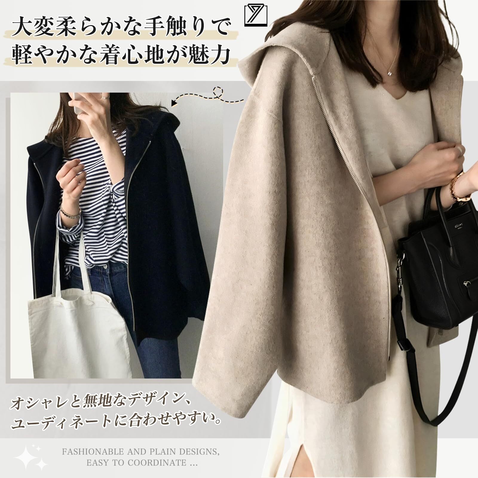 [Kayiyasu] コート レディース ジップパーカー アウター トップス パーカー フード付き フロントジップ 暖かい 長袖 ゆったり カジュアル 無地 きれいめ 通勤 秋 冬
