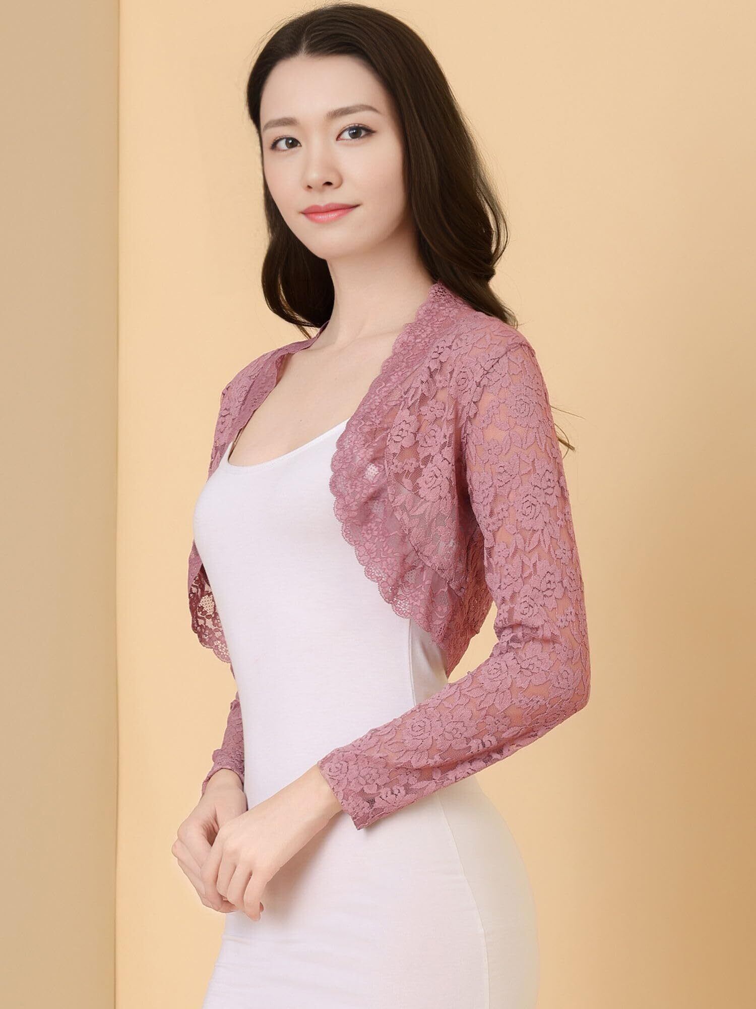 [Allegra K] レース ボレロ 長袖 カーディガン 花柄 シアー シュラグトップ 結婚式 エレガント カジュアル レディース