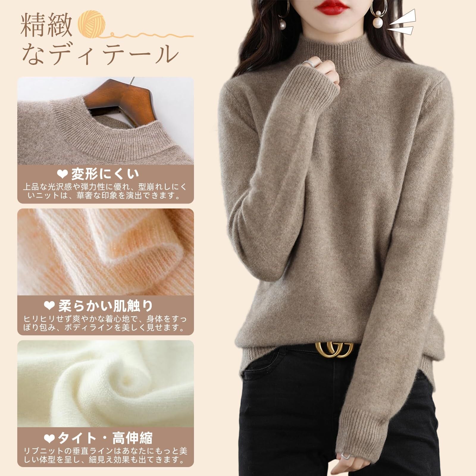【着心地抜群・変形にくい】カシミヤのような肌触りで上品な艶と発色の良い生地で、チクチクする感じはありません、型崩れしにくいニットは、華奢な印象を演出できます。体のラインに沿ったシルエットですっきりとしたコーディネートを楽しめます、カラーリングが魅力的な毎日着たいトップスです。