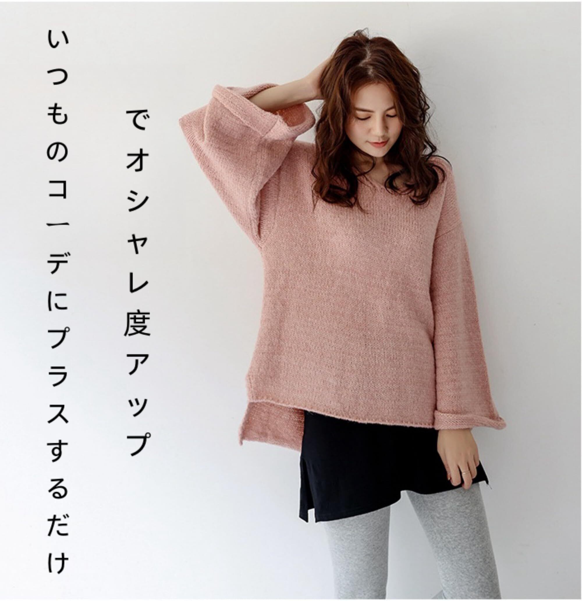 いつものコーデにプラスするだけでオシャレ度アップ! トップスに重ねるだけでレイヤード風のコーディネートが完成する。