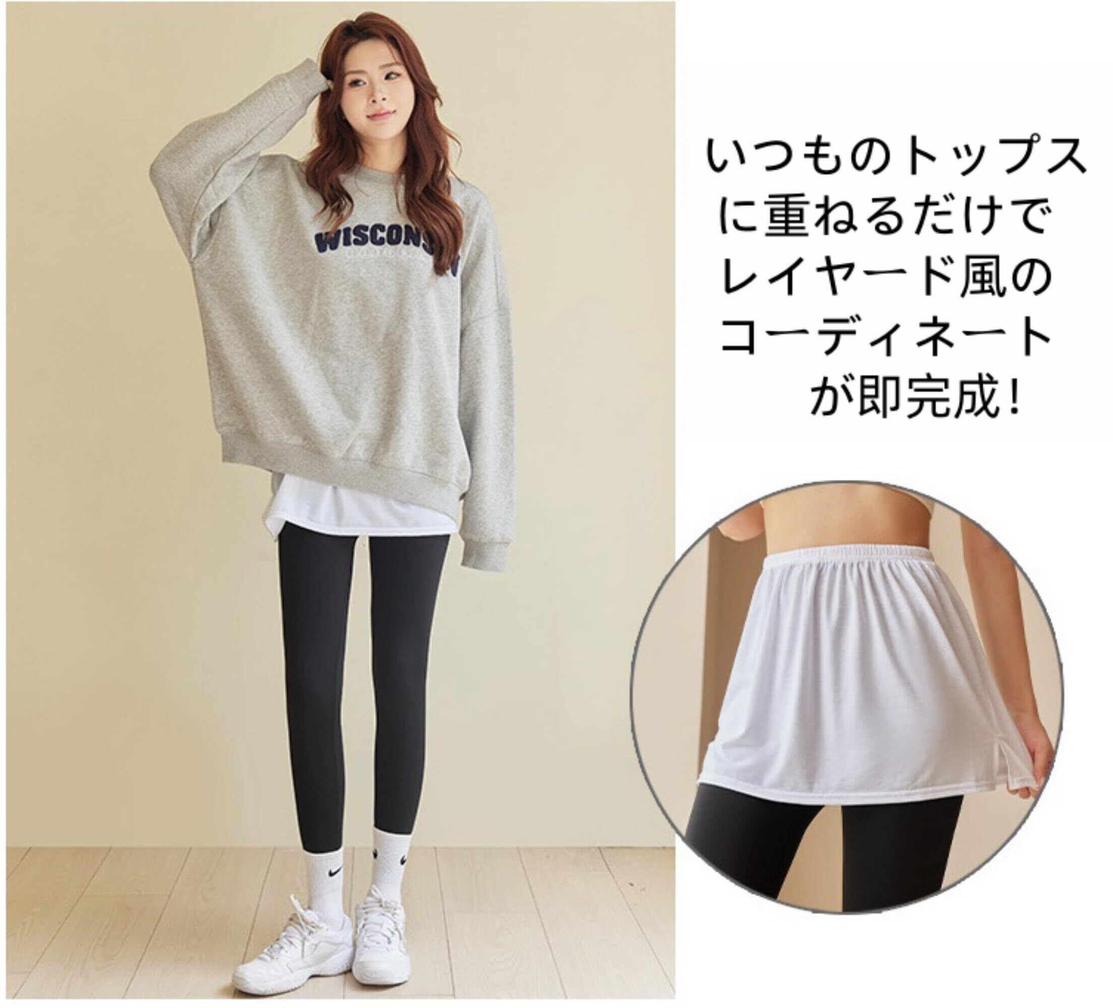 [YIXUANAI] 付け裾 レイヤード レディース 体型カバー つけ裾 スリットスカート トップス 2点セット 重ね着 無地 ウエストゴムチュニック かわいい カジュアル レイヤードtシャツ スリット カットソーつけ裾 レイヤードtシャツ