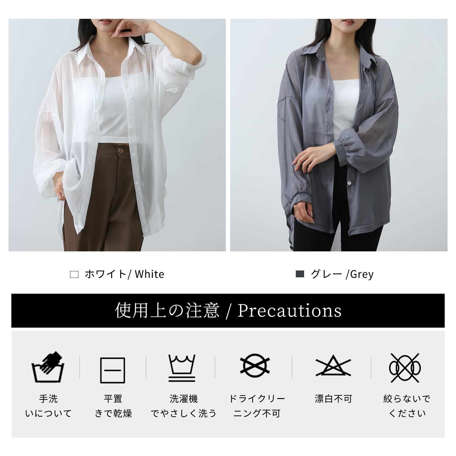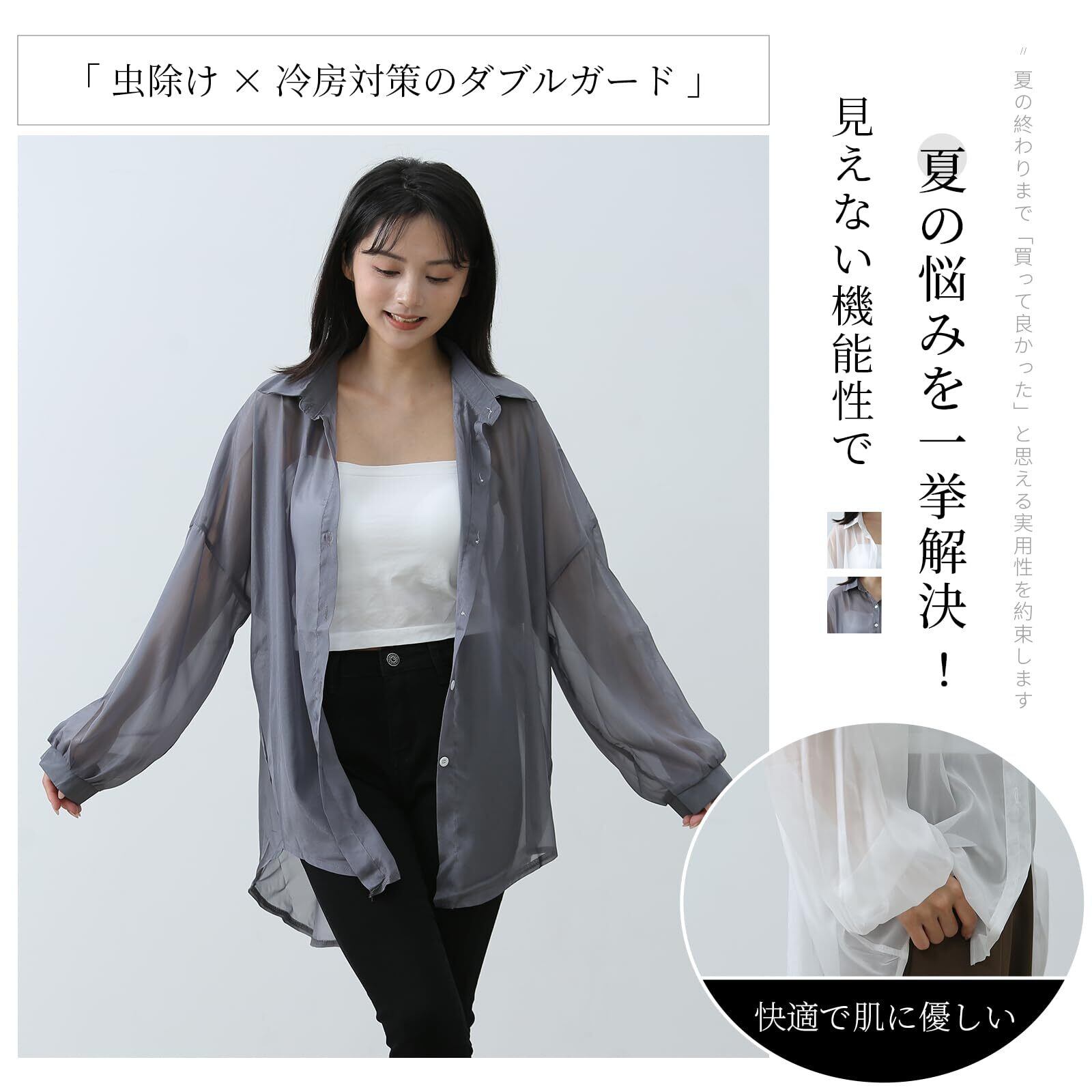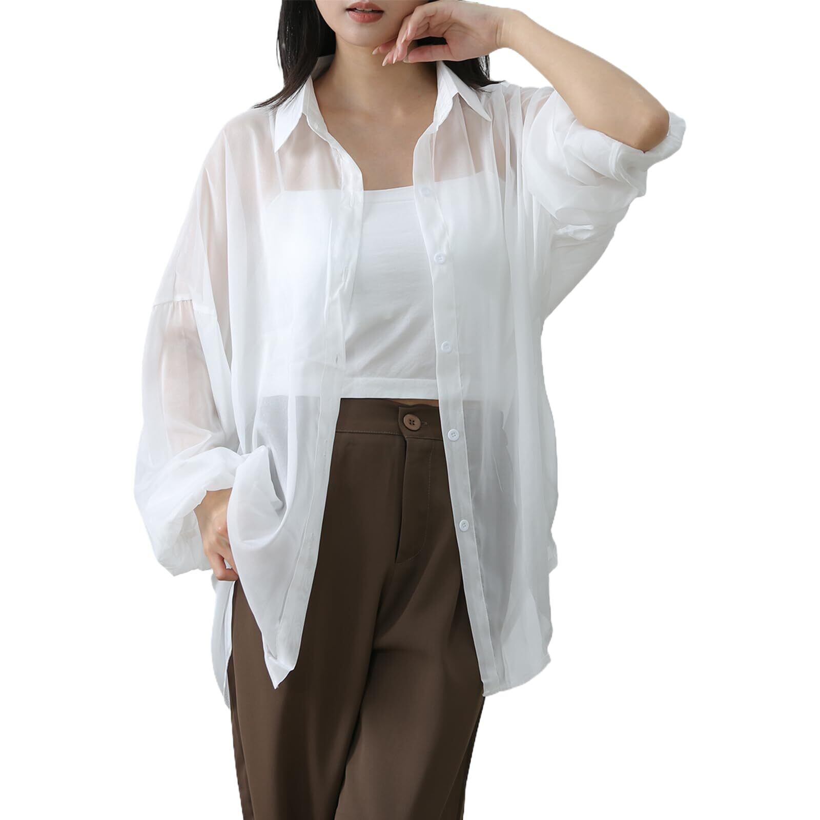 [Fealood] レデイース シャツ 長袖 透け感 日焼け対策 トップス シアーシャツ シフォン 大きいサイズ チュニック 重ね着 羽織り 前開きシャツ 冷房対策 UVカット 通気性 ゆったり カジュアル ファッション 春 夏