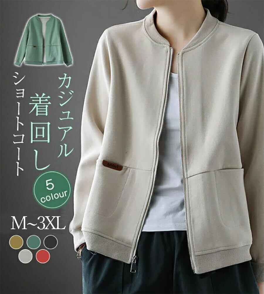 ➤ 特徴:5カラー展開、ジャケット、長袖、ジップアップ、無地、カジュアルシンプル