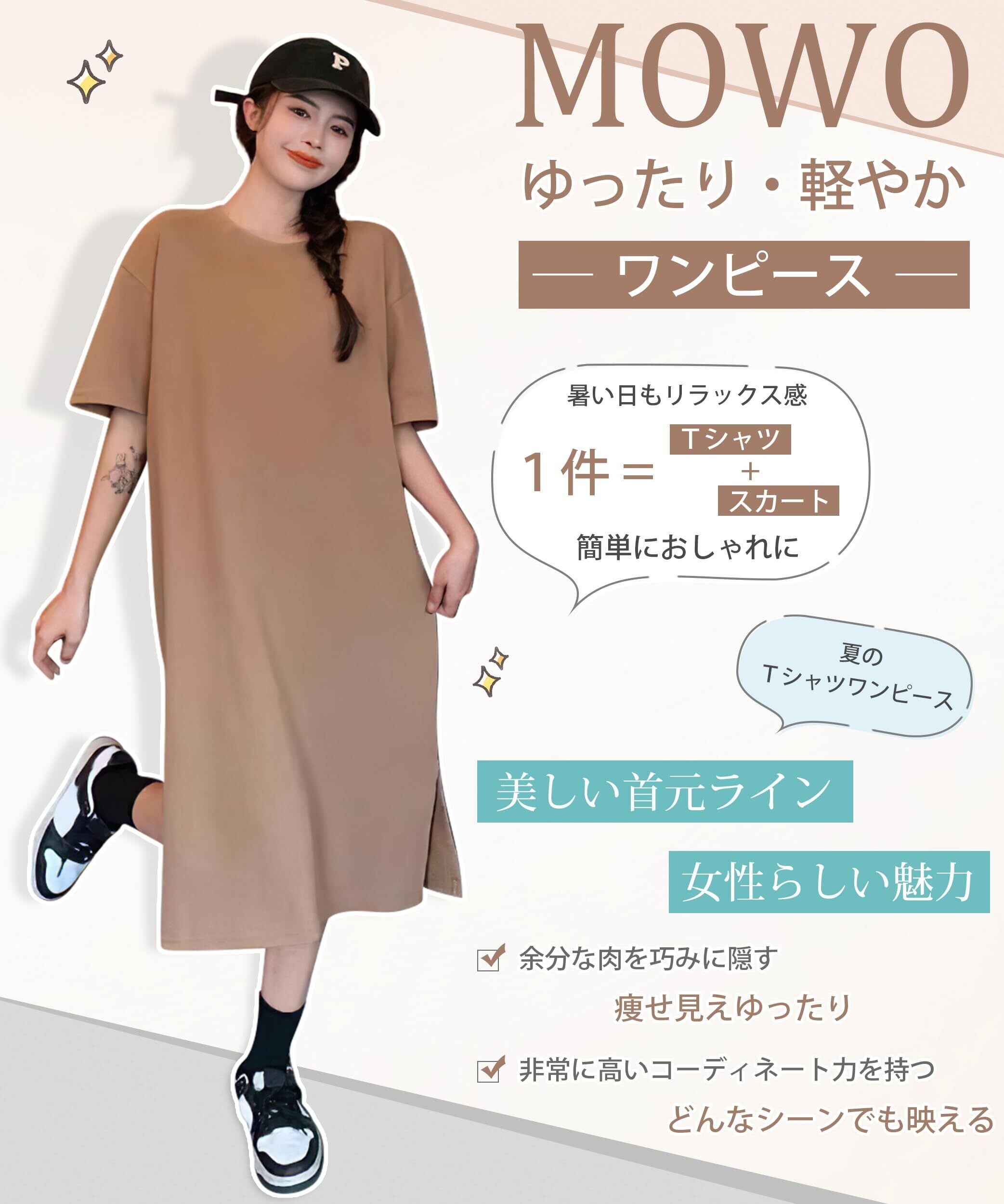 [MOWO] ワンピース レディース 春夏 【軽やかで快適な・痩せ見えリラックス感・女性らしい魅力】 ゆったり Tシャツワンピース カジュアル 着痩せ ドレス 8色入 体型カバー おしゃれ シンプル 通気性 薄手 無地 半袖