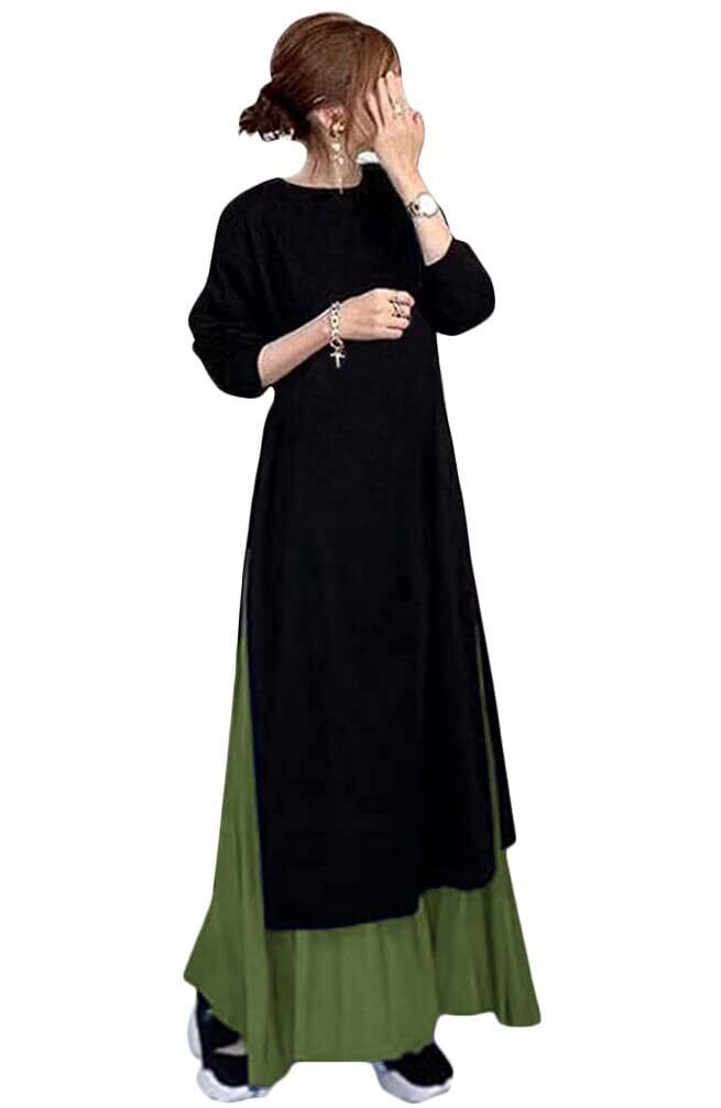 このロング丈のワンピースは、無地のデザインでありながら、女性らしさを引き立てるエレガントなシルエットが魅力です。秋冬にぴったりの長袖スタイルで、シンプルな美しさを持ちながらも、特別なお呼ばれや通勤シーンにおいても大活躍します。セットアップ仕様でさまざまなコーディネートが楽しめる点もポイントです。
