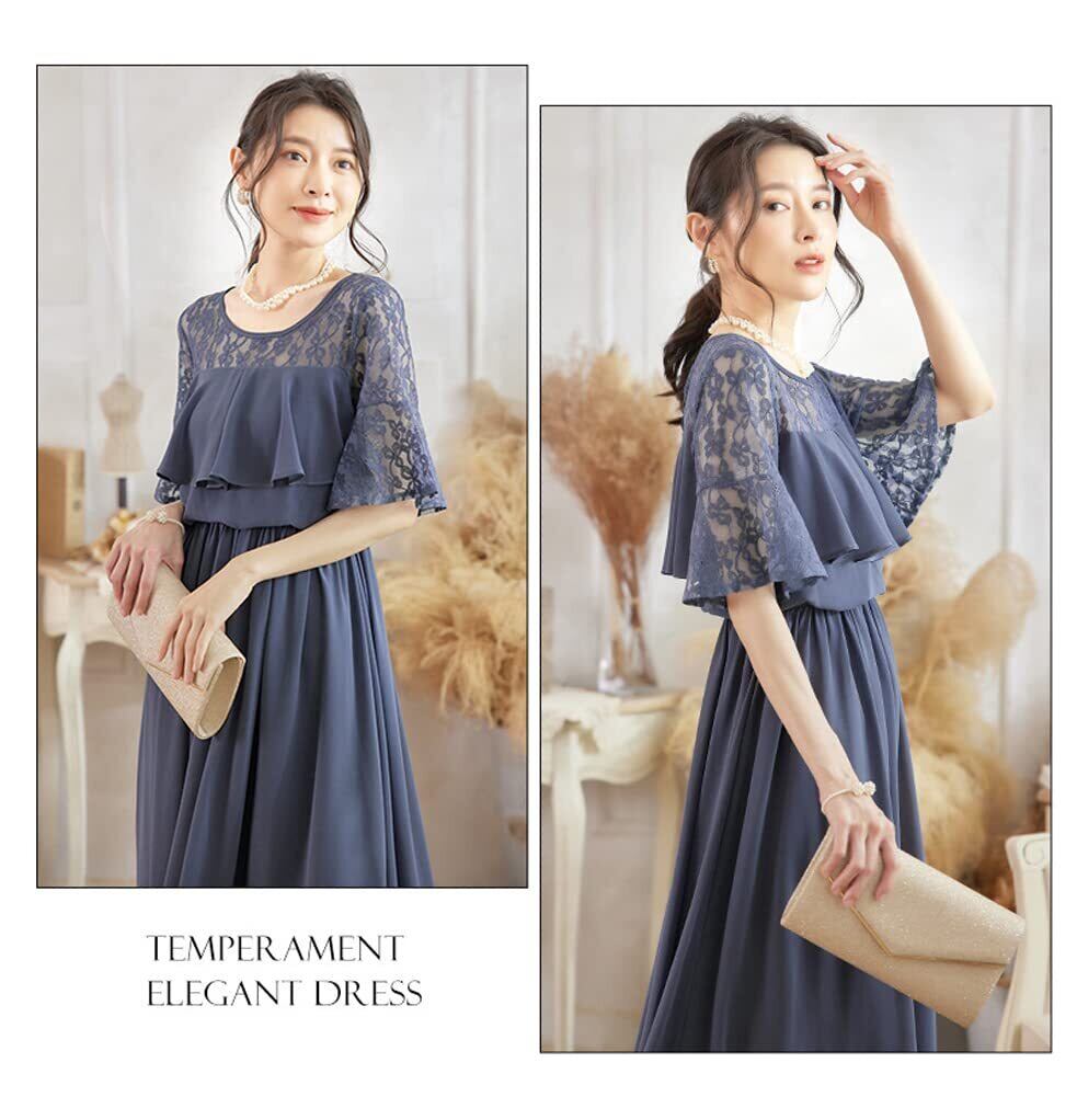 エクス パーティードレス ワンピース 結婚式 ドレス レース ロングドレス 袖あり お呼ばれ 謝恩会 発表会 演奏会 20代 30代 40代 50代