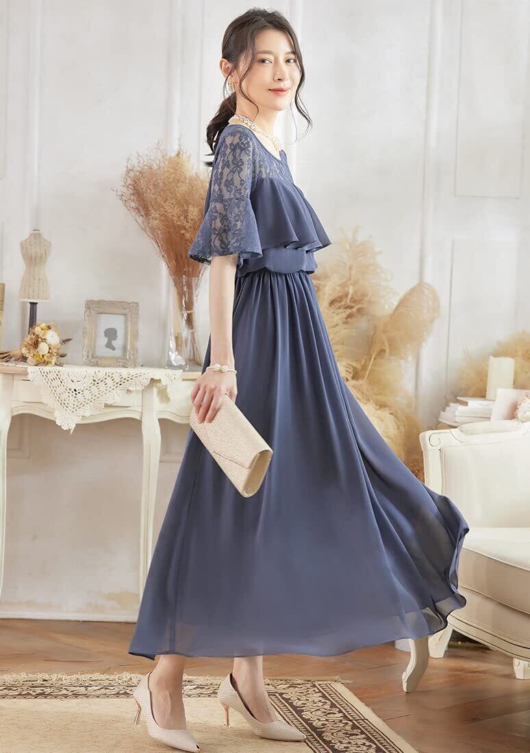 このエレガントなロングドレスは、洗練されたレースデザインと袖ありスタイルが特徴で、特別な日を一層華やかに演出します。体型カバー効果があり、どんな体型の方にもフィットする魅力的なシルエットを提供します。結婚式や披露宴、お呼ばれ、謝恩会など様々なフォーマルシーンで、あなたの女性らしさを引き立てる一着です。