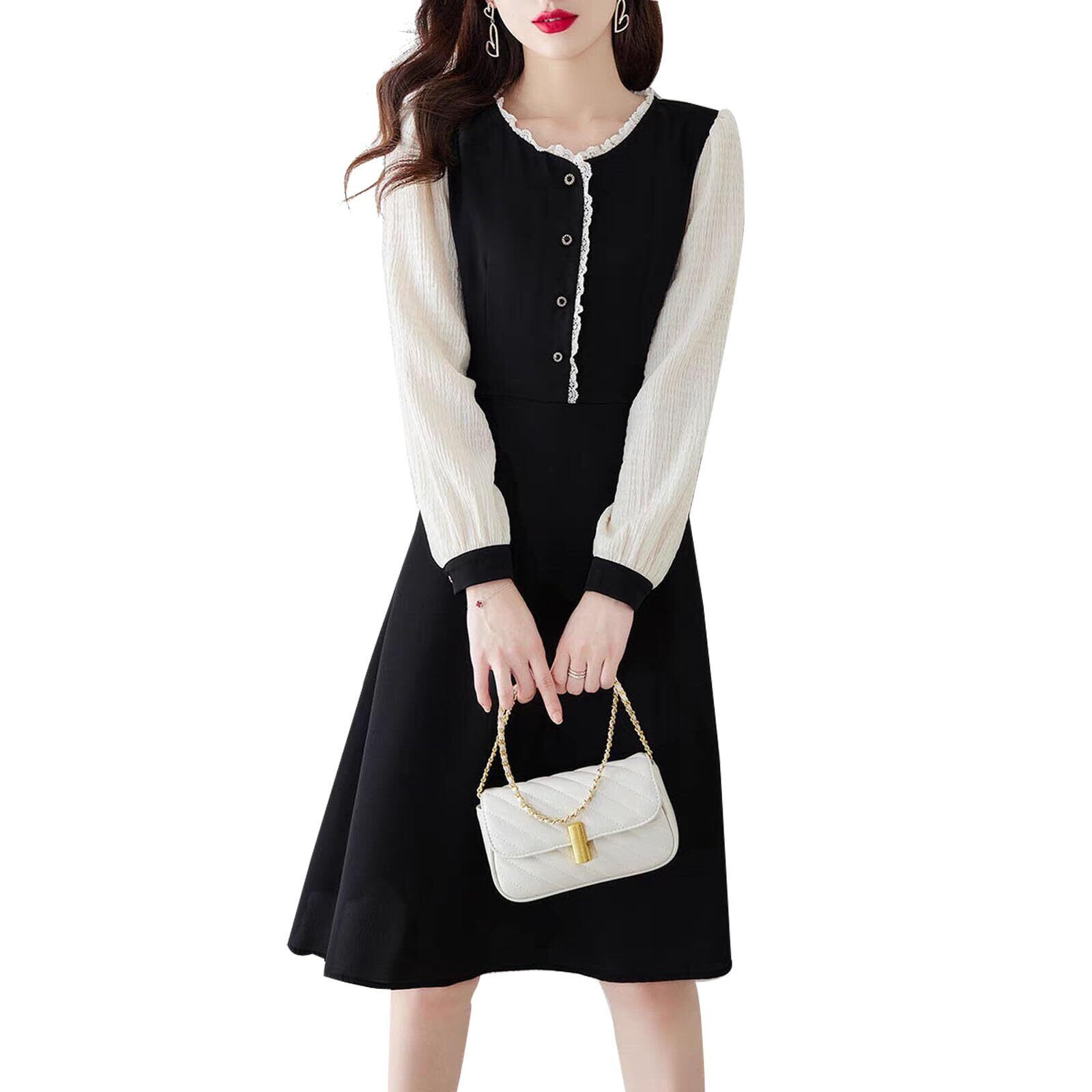 [PH.YZBBDPG] ワンピース レディース ワンピース 切り替え 大きいサイズ きれいめ ロング 長袖 フォーマル ゆったり 秋冬