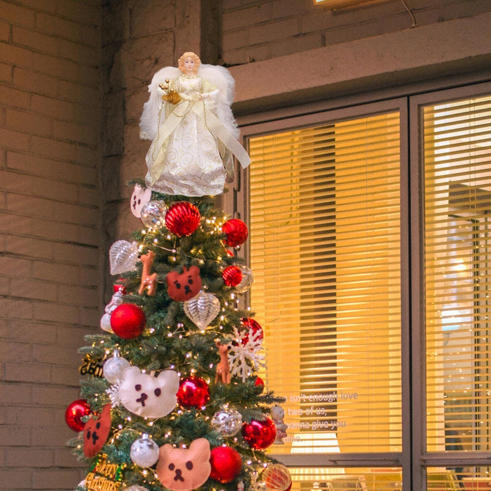 【2022最新】クリスマス ツリー トッパー エンジェル - 白い羽の翼を持つ立っているクリスマスの天使 | 写真 白い羽の翼を持つクリスマスの天使を立っています。 7.08インチの天使の梢の置物、誕生日新年パーティー用のクリスマスツリートッパーオーナメント。