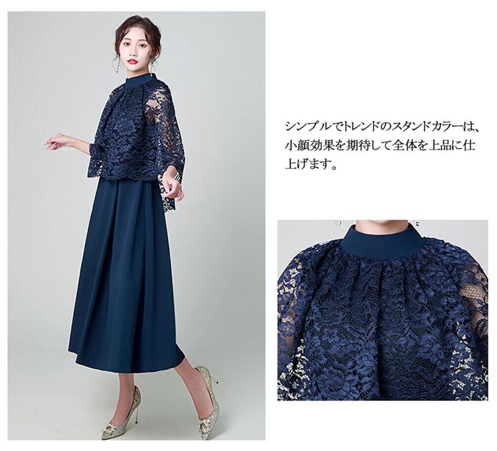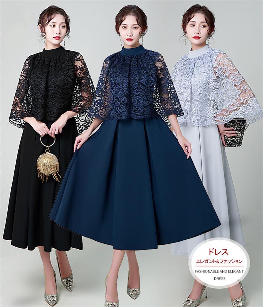この美しいワンピースは、特別なイベントや結婚式、二次会にぴったりの一着です。レースケープ風のデザインが、女性の神秘的な魅力を引き立て、ハイネックが上品な印象を与えます。Aラインのシルエットが心地よく体にフィットし、エレガントな雰囲気を演出します。ロングドレスながらも軽やかな印象を与え、動くたびに周囲の視線を集めることでしょう。