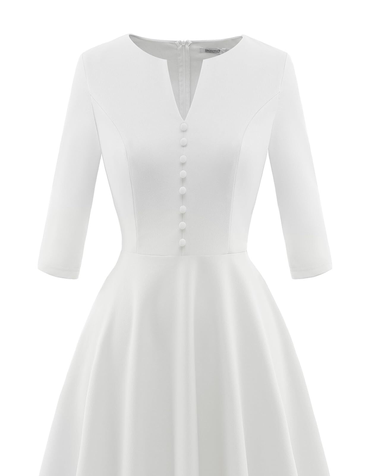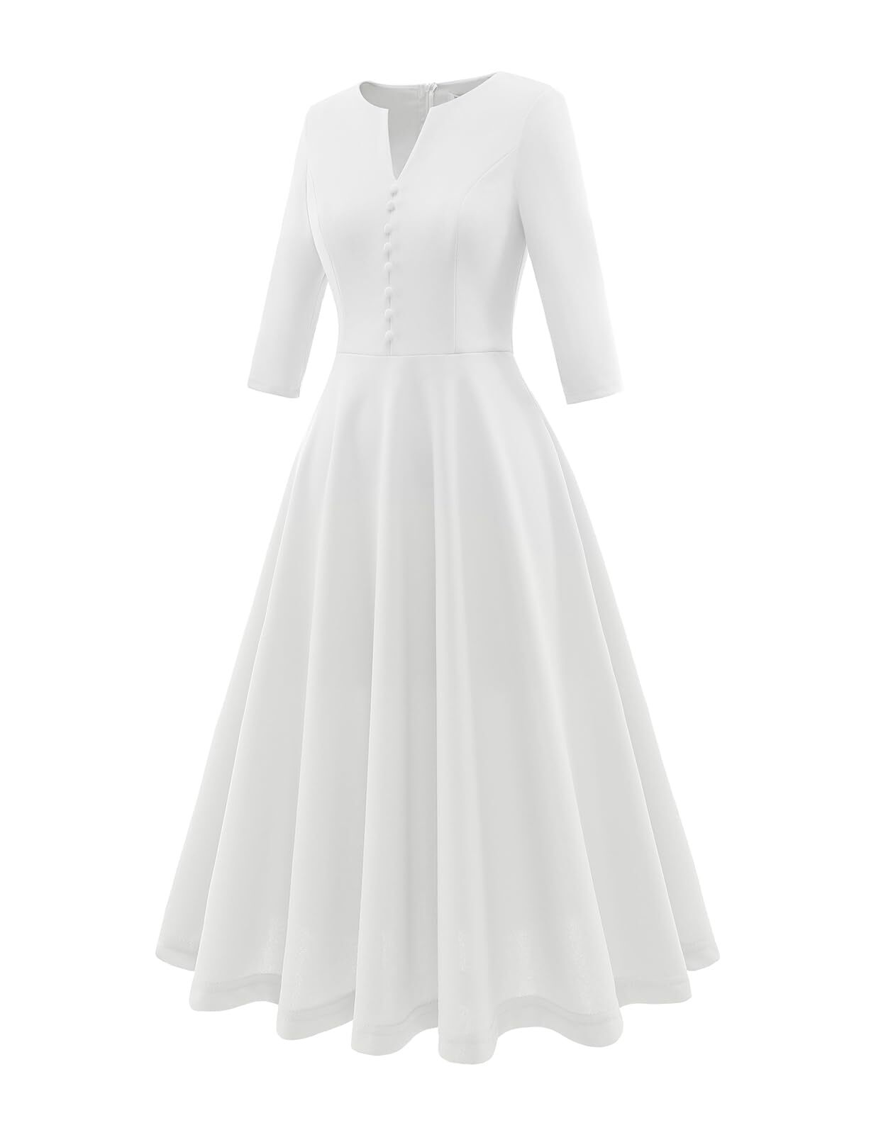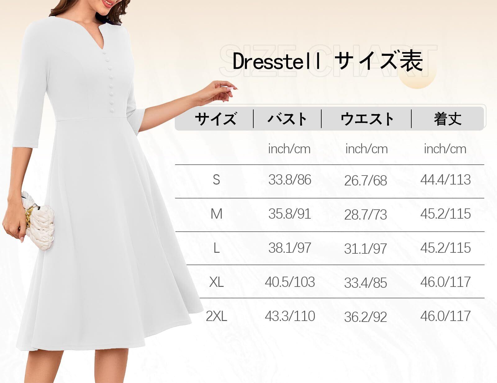 Dresstell(ドレステル) ワンピース レディース 結婚式 パーティー レトロワンピース フォーマルドレス ミモレ丈 七分袖 春夏 エレガント Aライン お呼ばれ 通勤 カジュアル 上品 シンプル きれいめ
