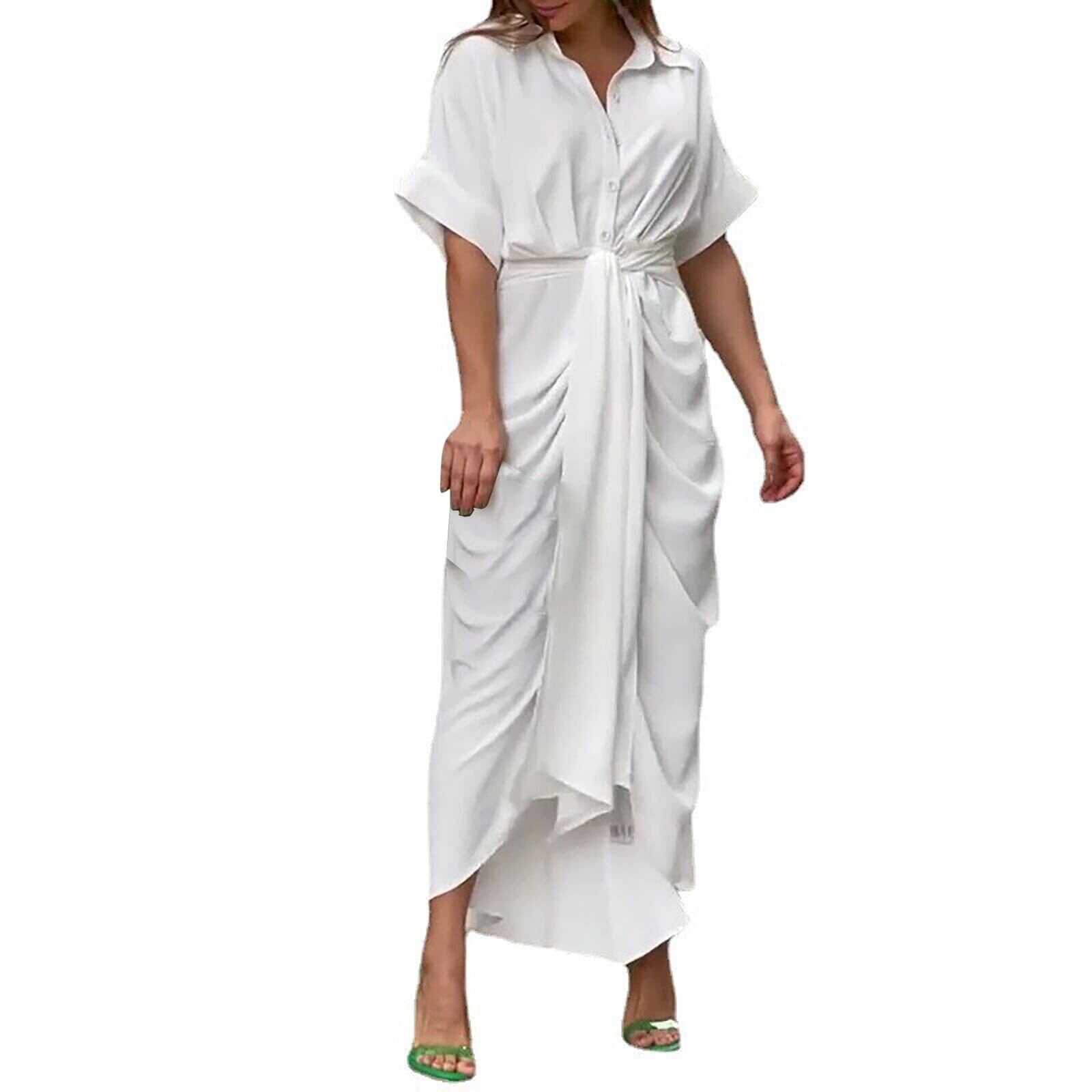 【特価商品】[Foreted] シャツワンピース レディース 春 夏 ワンピース ドルマン 無地 薄手 かわいい マキシワンピース Aライン お洒落 ロングワンピース ゆったり 体型カバー チュニック 長袖 大きいサイズ カジュアル 夏服 トレンド お出かけ