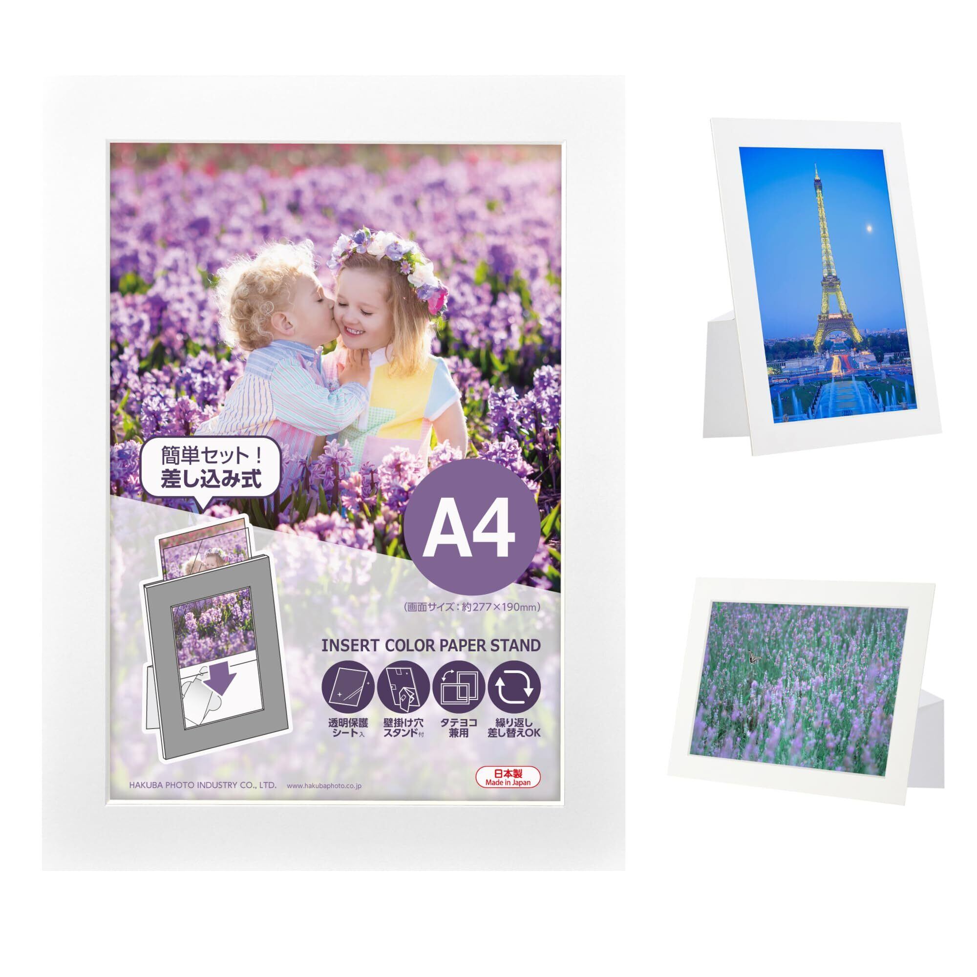 ハクバ HAKUBA ペーパーフォトフレーム インサートカラーペーパースタンド AZ A4サイズ ホワイト 差し込み式で入れ替え簡単 タテヨコ対応 卓上・壁掛け両対応 透明シート付 AMZMICPS-A4WT 4977187003680