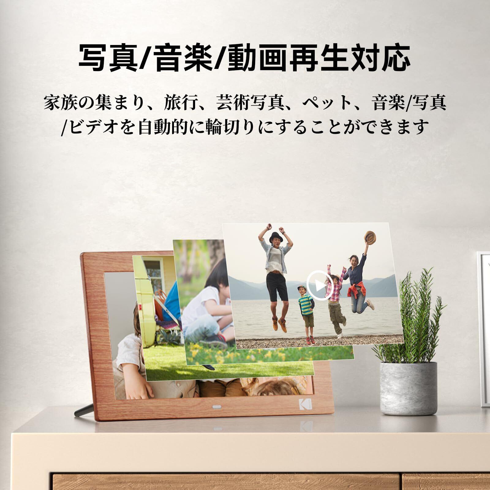 KODAK デジタルフォトフレーム 10インチ 高鮮明な画質 写真/動画/音楽再生 リモコン操作 SDカード/USBメモリに対応する タイマー機能 省エネ プレゼントに適用 (木目調)