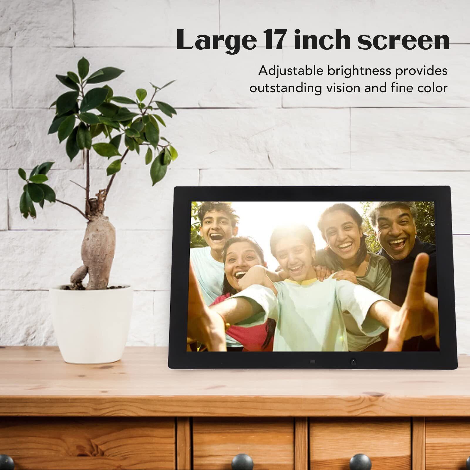 17インチの大画面:大型デジタルフォトフレームには、明るさを調整できるディスプレイがあり、優れた視覚と細かい色を提供し、あらゆる素晴らしい瞬間を再現し、美しい視覚的な饗宴を提示します。