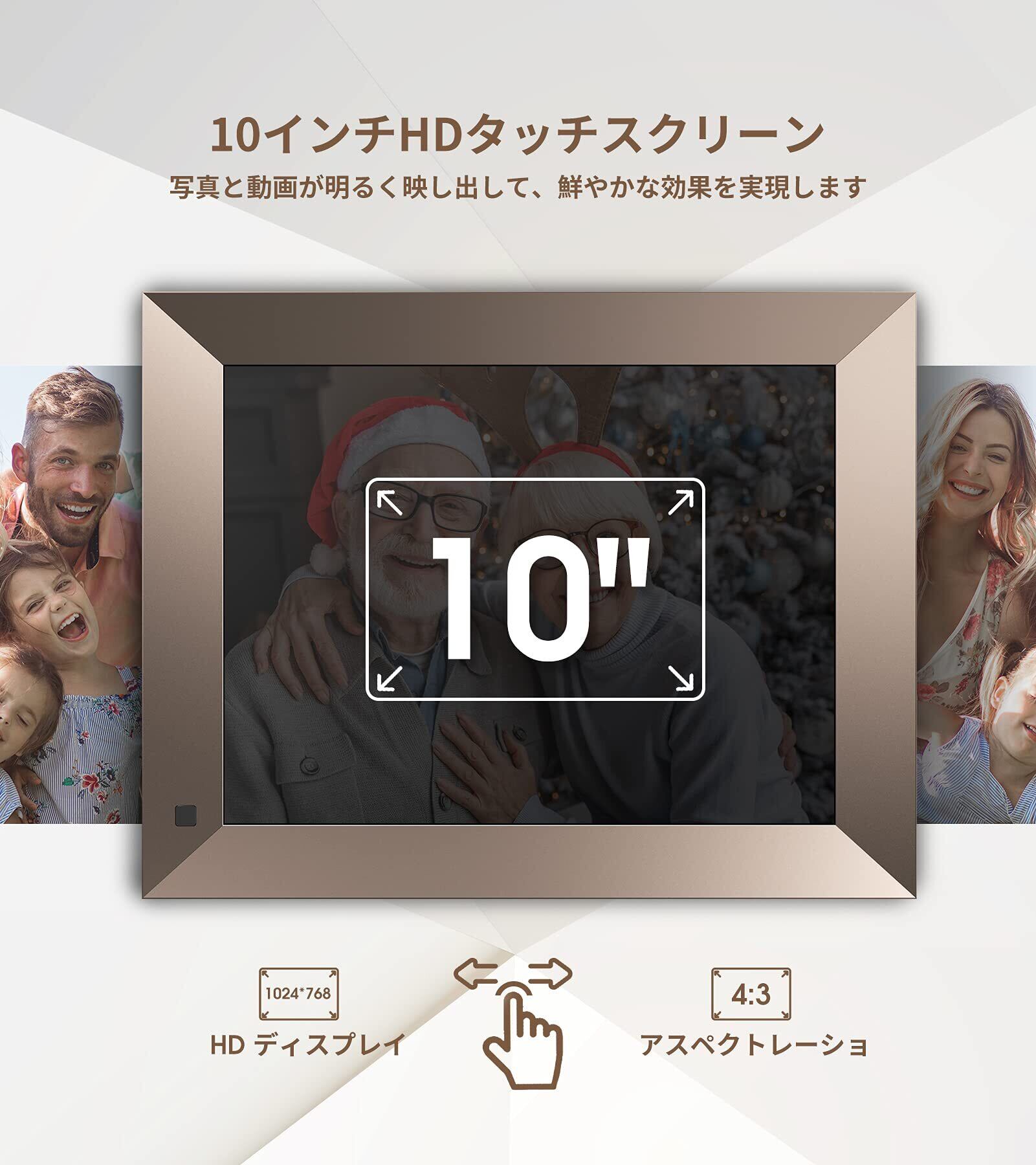 Dragon Touch デジタルフォトフレーム 10インチタッチスクリーン WiFi対応 IPS広視野角 人感センサー 16GB内蔵メモリ 磁気式スタンド付き 自動回転機能 写真動画再生/カレンダー/アラーム 良いギフト 日本語取扱説明書 Classic10 Elite