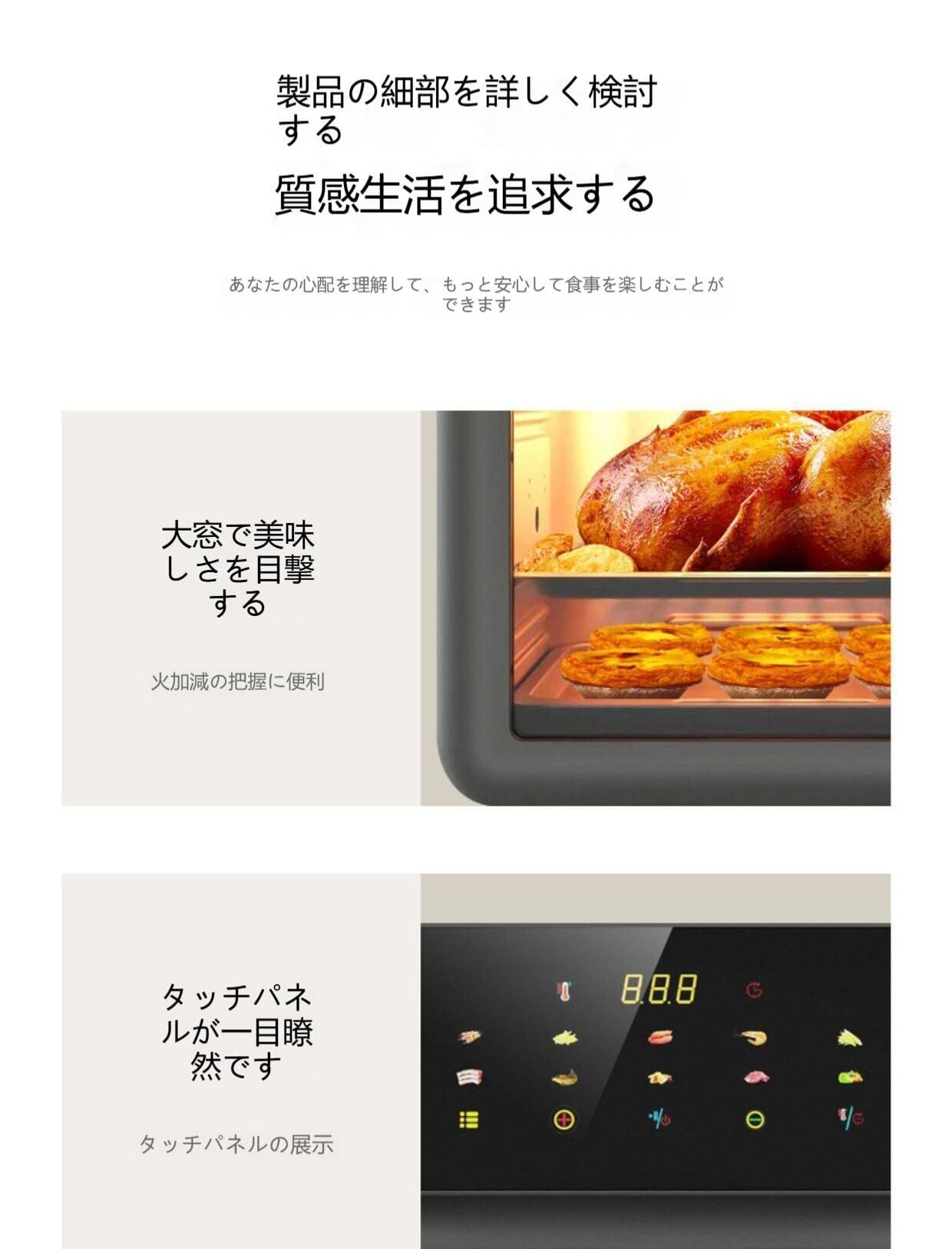 **操作が簡単**:15L の家庭用大容量で、スマートタッチ操作により、調理時に希望の時間と温度を設定するだけです。設定した時間が経過すると自動的に停止し、初心者でも簡単に使えます。