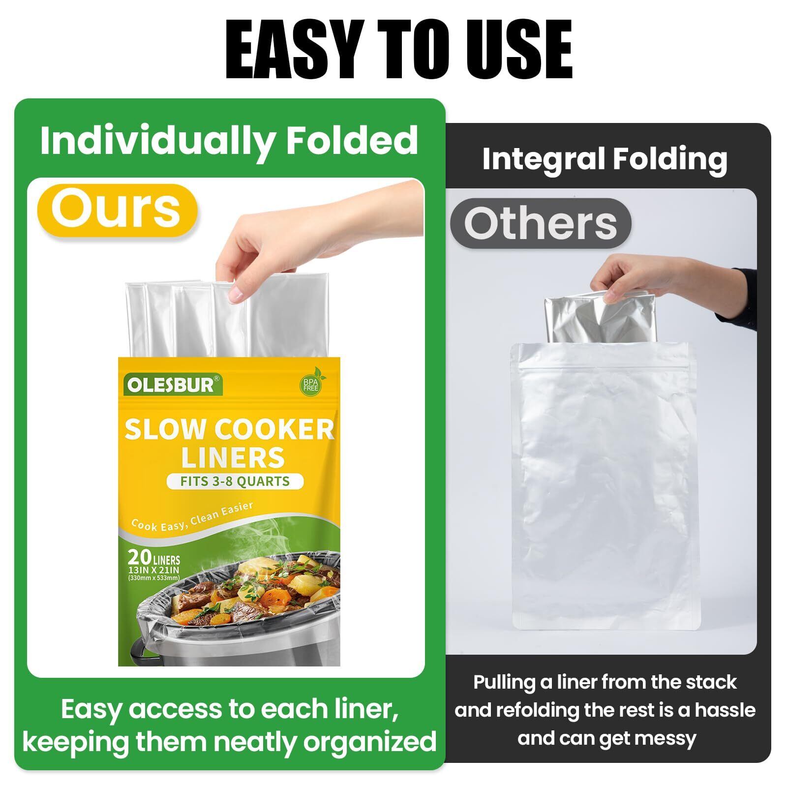 非常に便利:すべてのライナーが散らかった山に積み上げられている従来のボックスとは異なり、OLESBURスロークッカーライナーは個別に折りたたまれ、保護用の複合バッグに密封されています。 1つのライナーを束から引き出すのに苦労する必要はもうありません。1つのライナーを簡単につかんでバッグを再密封し、残りを新鮮に保つことができます。