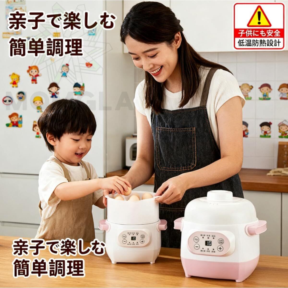 【天然セラミックライナーで健康安心】内釜に天然セラミックライナーを使用し、離乳食の調理にも適した無臭・焦げ付き防止仕様です。耐熱性に優れ、滑らかなガラス外観が温かみのある触感を与え、健康的且つ耐久性が高く、キッチンでの料理体験を向上させます。※製品パネルは英語表記で、説明書は英語または中国語でランダムに同梱されます。