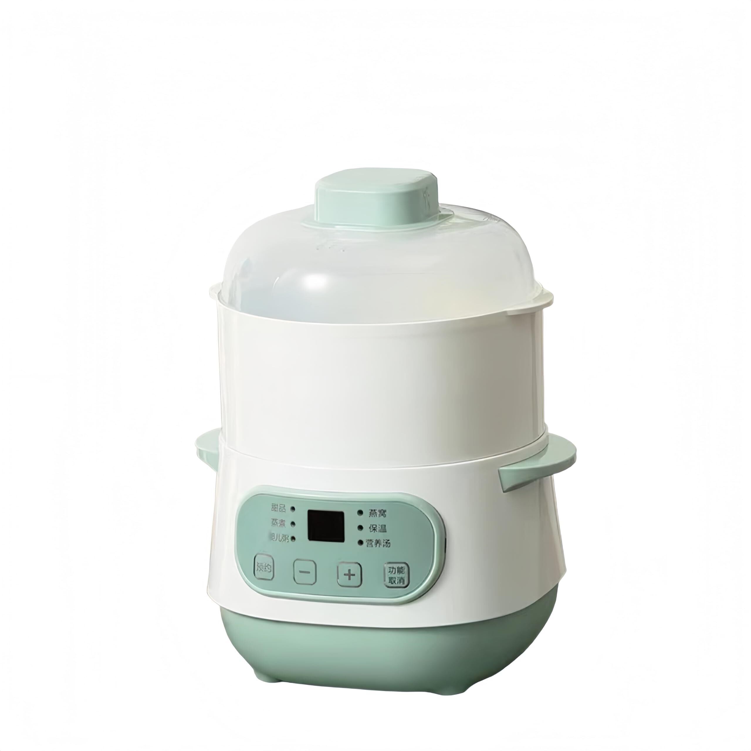 【在庫処分】PENG電気煮込み鍋 セラミックスープポット 電気鍋 2人用 スロークッカー 家庭用焦げ付き防止ミルク鍋 自動予約防水煮込み鍋 電気なべ 簡単調理 保温モード 調理鍋 コンパクト なべ 一人暮らし 蒸し 料理 マルチ調理 寮・オフィス用 (グリーン + スチーマー)