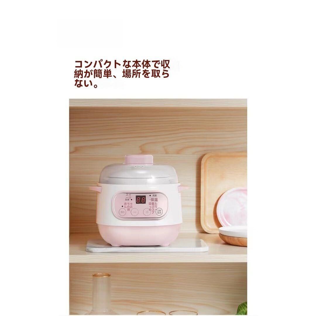 シライフケ ● コンパクトなサイズなので、一人暮らしや寮・オフィスでも使いやすい調理器具です。 ● セラミックスープ鍋で煮込めば、味がしっかり染み込んだご飯やおかずが簡単に作れます。 ● 家庭用焦げ付き防止ミルク鍋や自動予約防水煮込み鍋など、便利な機能も充実しています。 ● 長時間低温調理で美味しく健康的に調理可能! ● 保温モードも搭載しているので、あたたかいまま食べられて経済的です。
