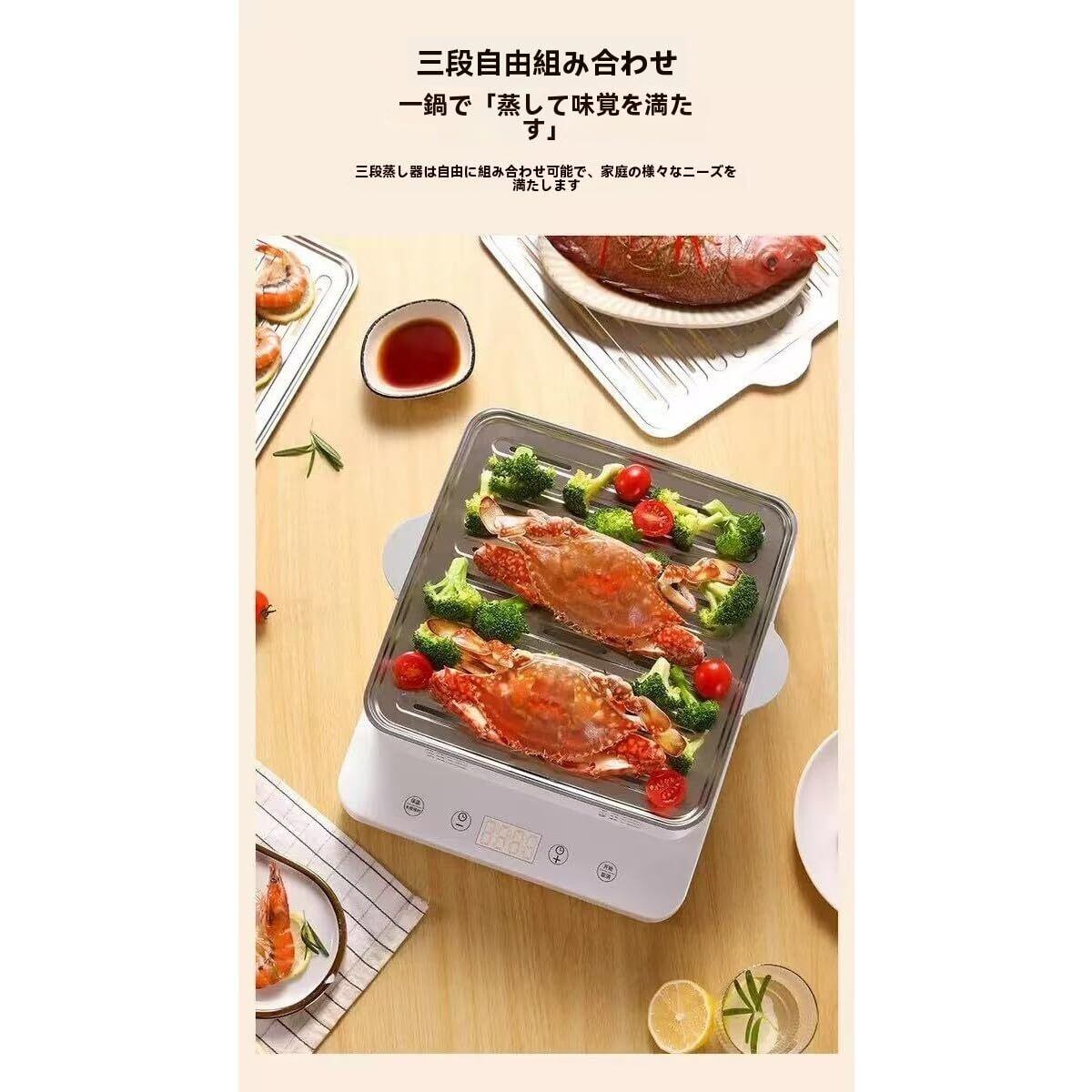 【3 段式大容量 24L】3 段を自在に組み合わせられ、1 人から複数人のニーズに応えられる多機能電気スチーマーは、レストラン、バー、カフェ、ホテル、家庭などで活用できる理想的な製品です。24L の容量は、ご家族での使用やディナーパーティーの料理準備に十分対応。これにより一度に複数品の料理を調理でき、人数分の料理量も確保できます。