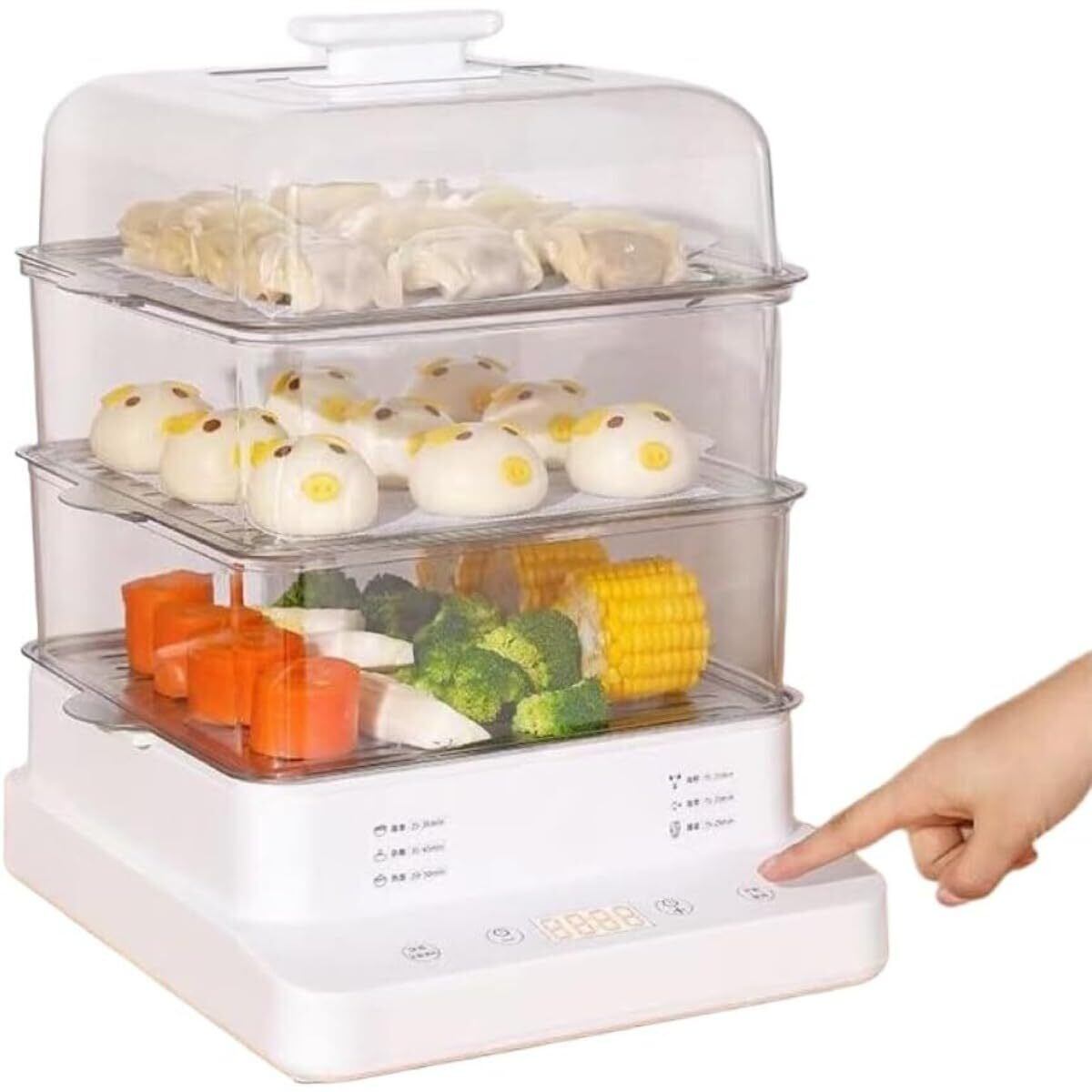 電気蒸し器 三層 22L 大容量 家庭用 スチームクッカー|24H 予約タイマー / 2H 保温 乾燥防止保護付き|多機能:朝ご飯調理・卵蒸し対応 家用電気スチーマー (ホワイト)