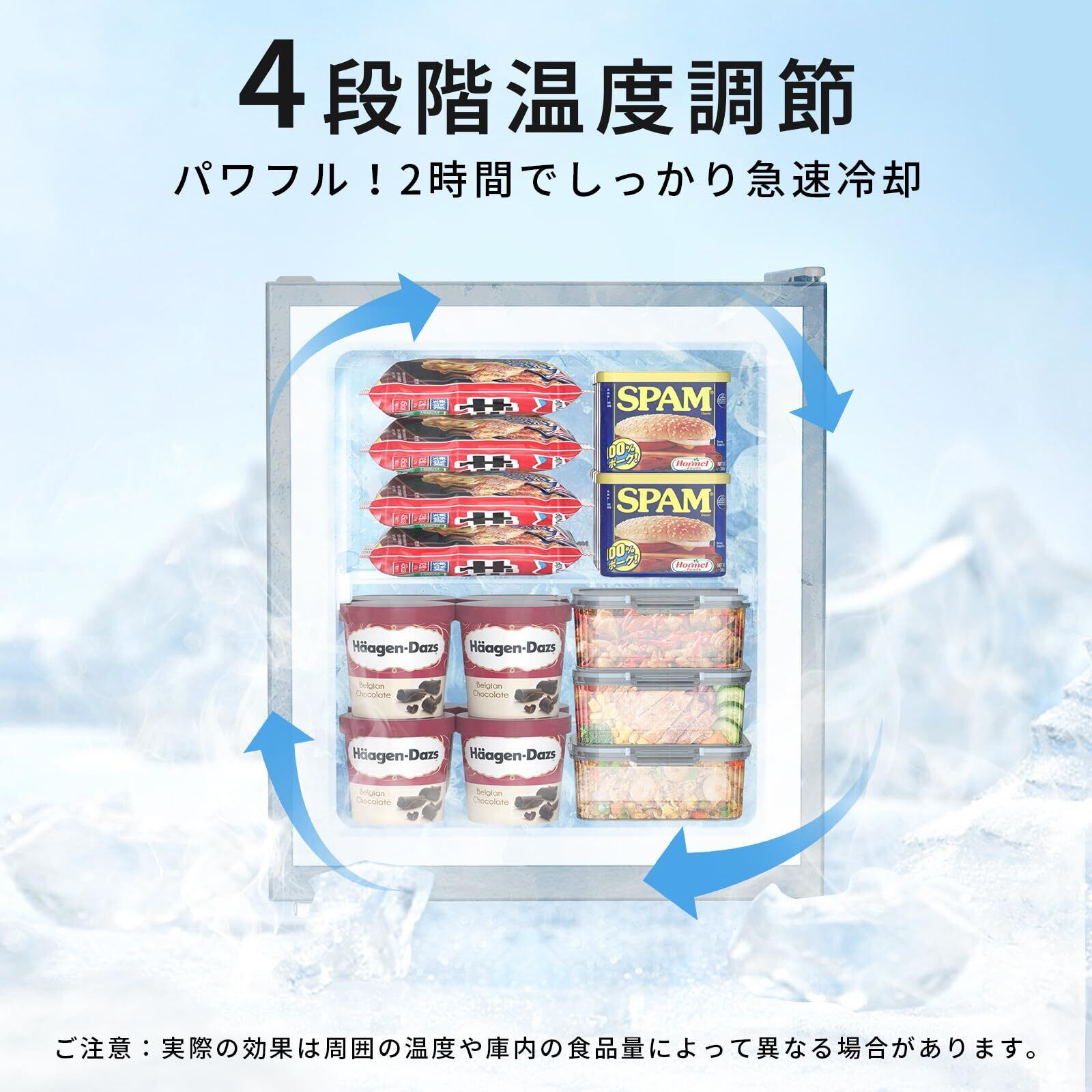 【4段階の温度調節機能】温度は-14~-12℃、-16~-14℃、-19~-16℃、-22~-19℃の4段階から調整可能。保存する食材に応じて最適な温度を選ぶことができるので、冷凍食品やアイスクリーム、肉類など、それぞれに合った環境でしっかり鮮度をキープ。食材の美味しさと品質を長く保てます。