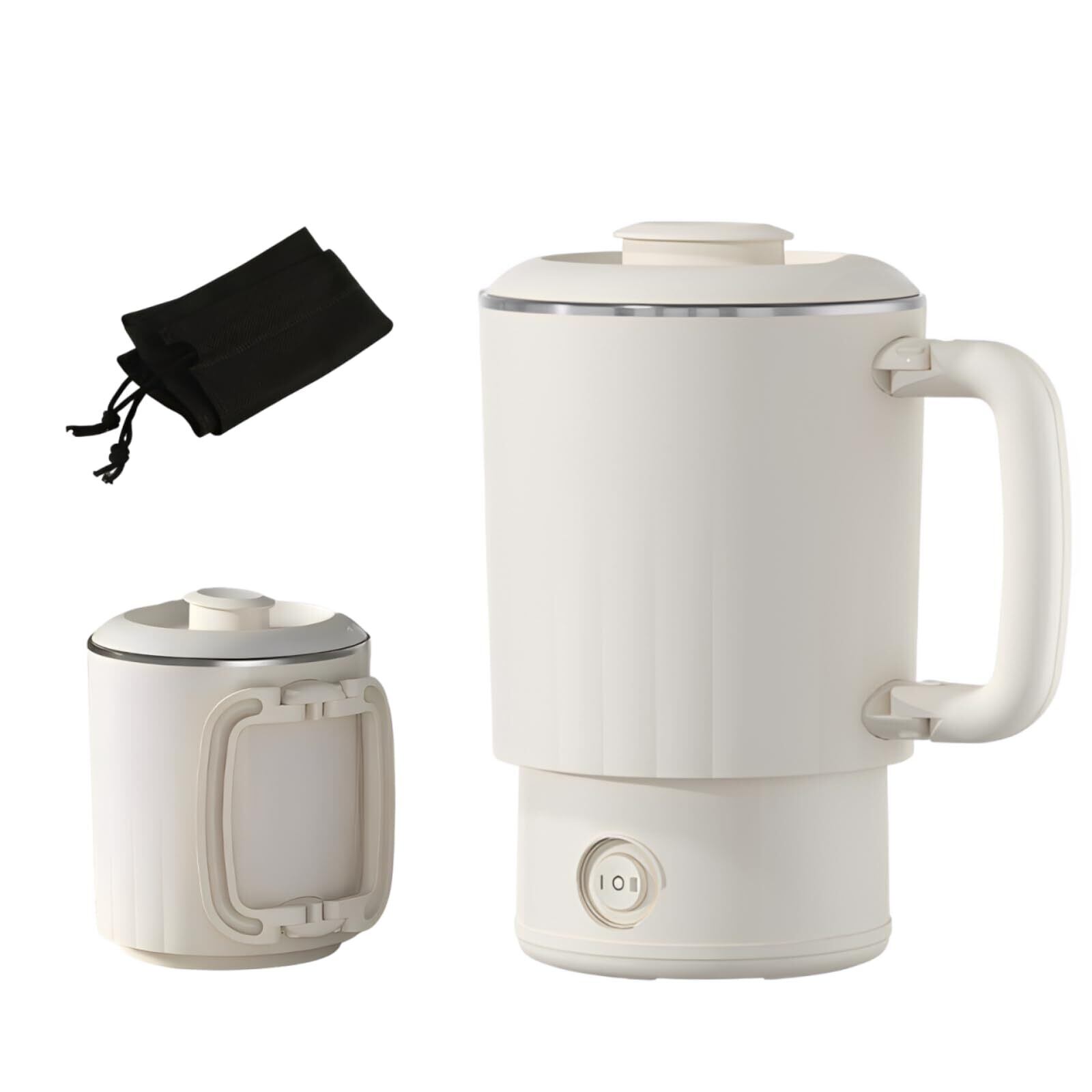 【在庫セール】電気ケトル 小型 ポータブル 0.8L トラベルケトル 600W 急速沸騰 二重断熱 やけど防止 空焚き防止 漏れない 携帯便利 マットホワイト LOK-01A