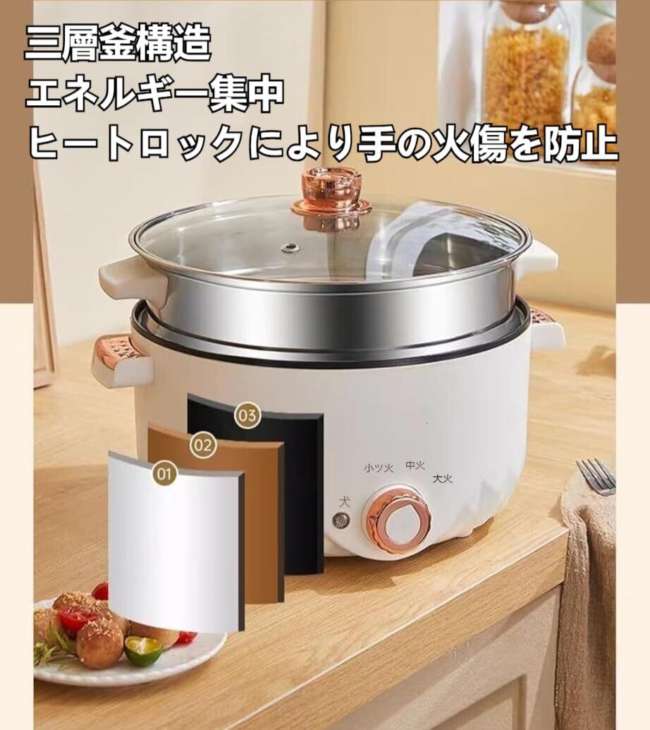 この「便利な多機能鍋」は、3Lの大容量を持ちながら、一人用としても最適なサイズ。炊飯や蒸し料理から煮込み料理まで、多彩な調理が可能です。温度調節機能も付いており、理想的な温度でお料理を楽しむことができます。毎日の食事が手軽かつ美味しくなる優れたアイテムです!