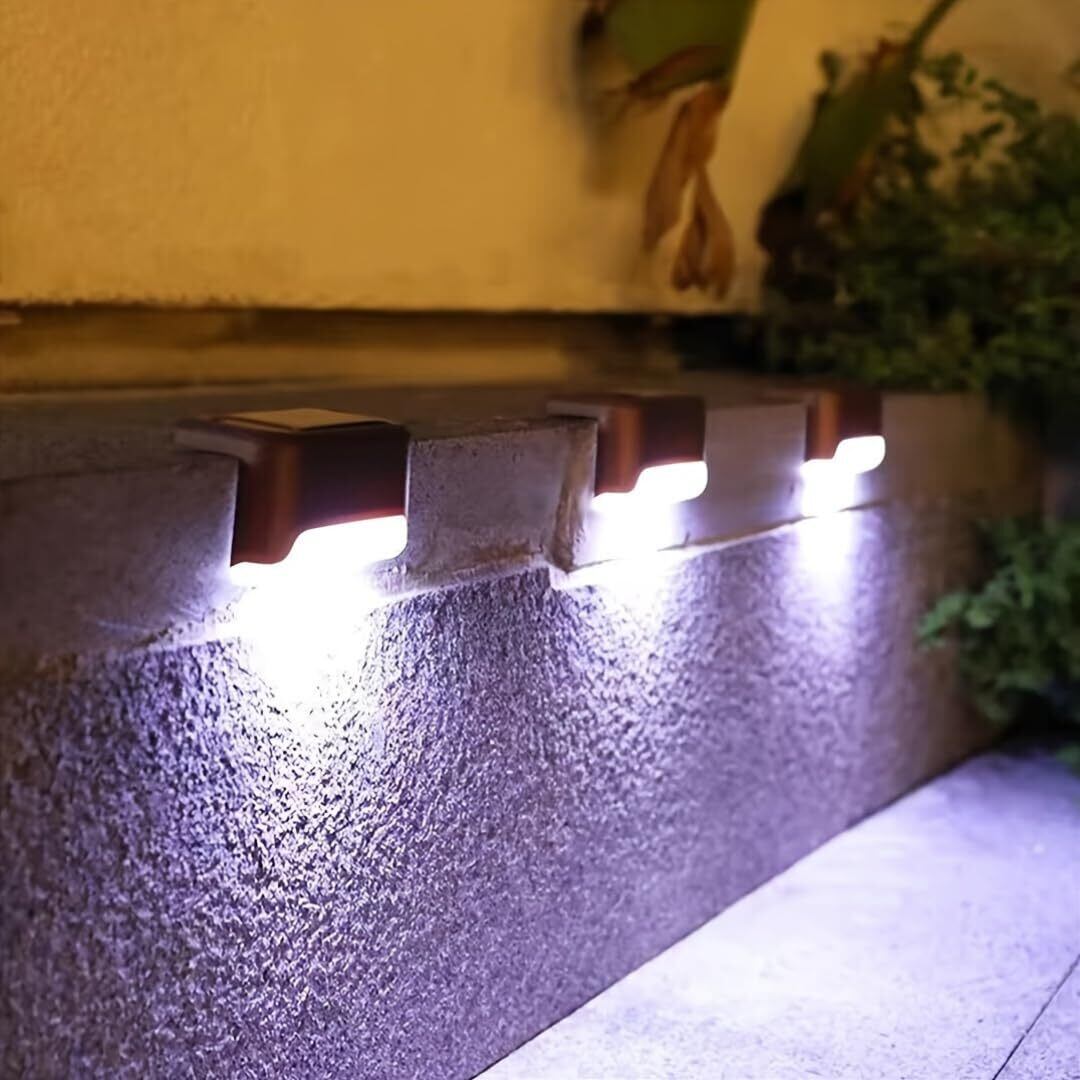 【特価セール】ステップ、フェンス、庭、パティオ、手すり、庭や通路、屋外の階段用の防水LEDライトソーラー屋外ランプ4個